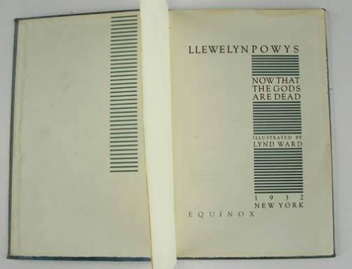Now That The Gods Are Dead, by Llewelyn Powys, illustrated by Lynd Ward, published by Equinox, of New York, 1932, from the Estate of Charles Ragland Bunnell, Condition: Good, cover wear, no dust jacket