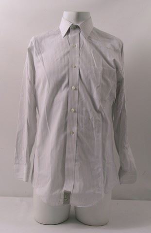 Agent Fuller (Michael J. Kelly) screen worn, hero, white with thin grey stripes 'Brooks Brothers' long sleeve button front shirt. (size 15 - 33)
