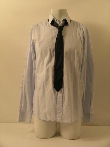Now You See Me - Dylan Rhodes (Mark Ruffalo) screen worn, hero, dark navy two button 'Neil Barrett' suit jacket and pants, light blue long sleeve button front 'Boss' dress shirt, (size L) navy with black and white small detail thin neck tie, and black leather lace up the front 'To Boot New York' dress shoes. (size 9 1/2) Includes wardrobe tag!
