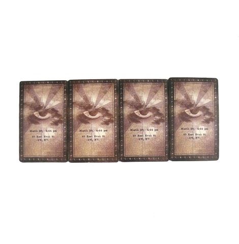 Acquired directly from Summit Entertainment who produced the thrilling illusive Now You See Me (2013) is a set of hero screen used, four Tarot cards including Hermit, Death, Lovers, High Priestess, with 'March 29, 4:44pm 45 East Evan St. Ny, Ny' on the back. These were featured on screen and is the only set available. Measures approximately 5 1/2" x 3 1/2".