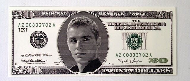 Jack (Dave Franco) screen used, hero, fake Twenty Dollar Bill. (approx. 6" x 2 1/2") . Last one available.