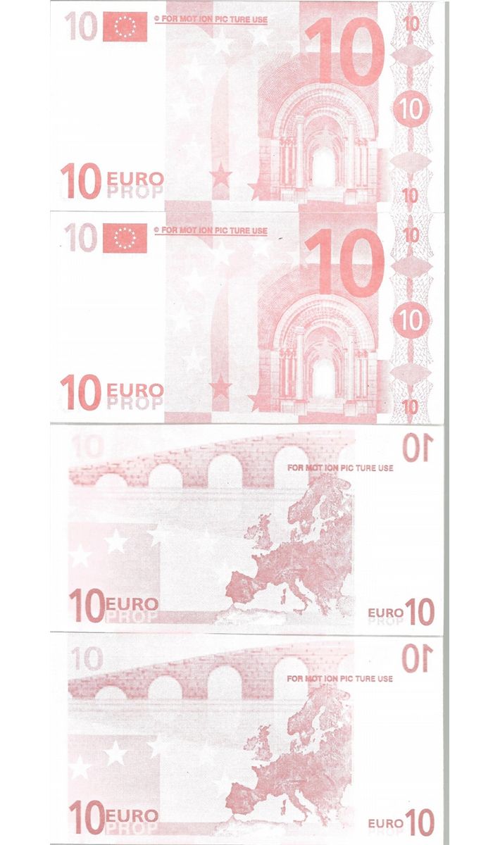 Four (4) 10 Euro bills that rained down on audience in the bank heist trick in the film