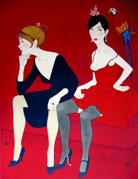 Noyer "Ladies In Red" Limited Edition Lithograph - Edition Size 220 - Hand Signed By The Artist - Numbered 213/220 - Image Size 32"X25" - Professionally Framed & Matted