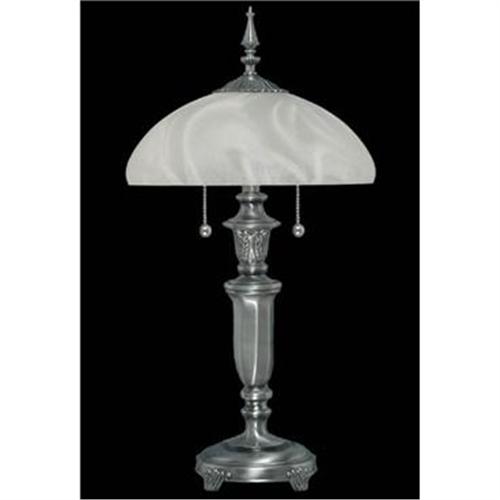 Height: 24" Width: 13" Bulb: 2 - 60W Medium (Supplied) This table lamp is featured in our Plated Satin Pewter finish. The shade is fine imported French Nuage glass. The 2 sockets are controlled by chain pulls. Available Finishes Satin Pewter Click to Enlarge <BR>Free Shipping in the continental US