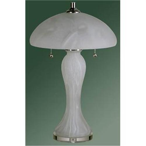 Height: 21" Width: 12 1/2" Bulb: 2 - 60W Medium This graceful lamp features imported French Nuage glass shade and vase. Base is polished lucite and fittings are polished chrome. The 2 sockets are controlled by chain pulls. Available Finishes Lucite / Chrome Click to Enlarge <BR>Free Shipping in the continental US