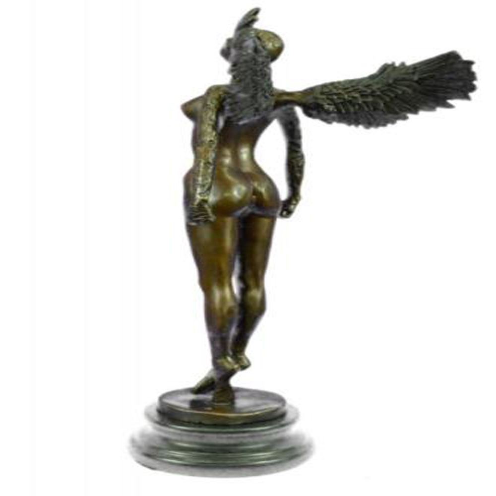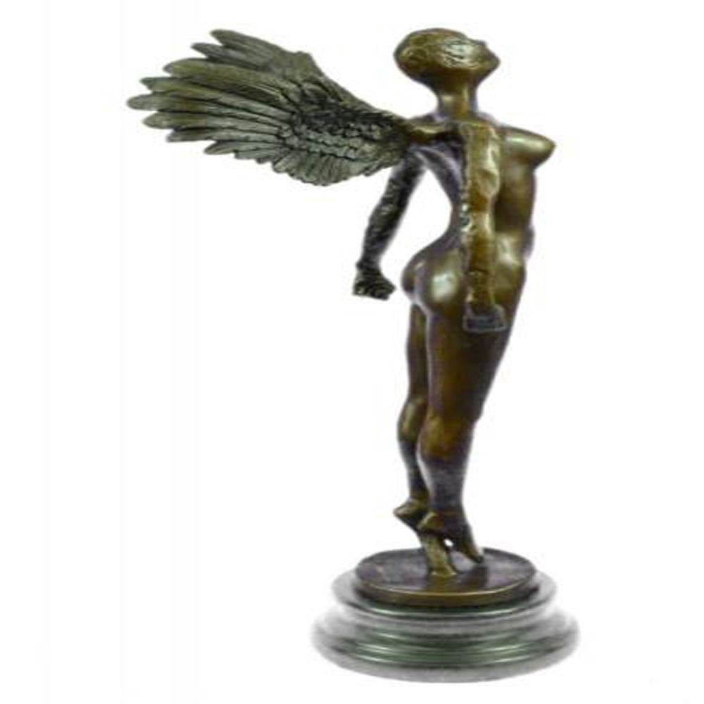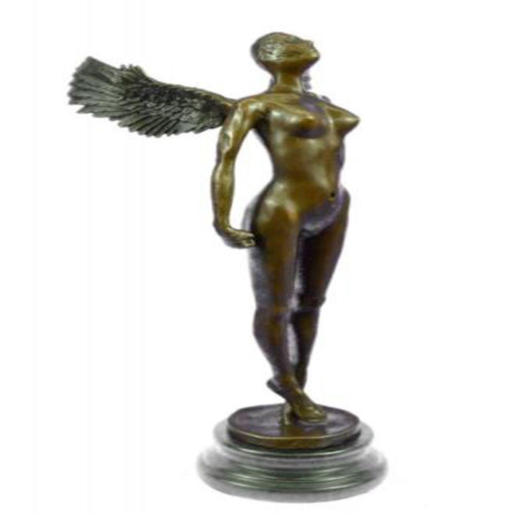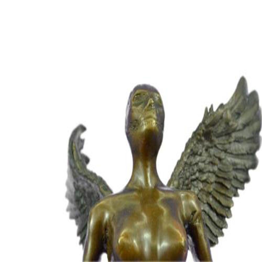 An angel is flying up to her god. Her hands are held tightly in fists to power her flight upwards. Her wings wide wings are stretched outwards. Her bodice is nude from head to toe without a hair on her head. It was created using the lost wax method. Bronze Dimensions with Marble Base: Height 16 X Width 9 inches. Weight: 9 LBS.