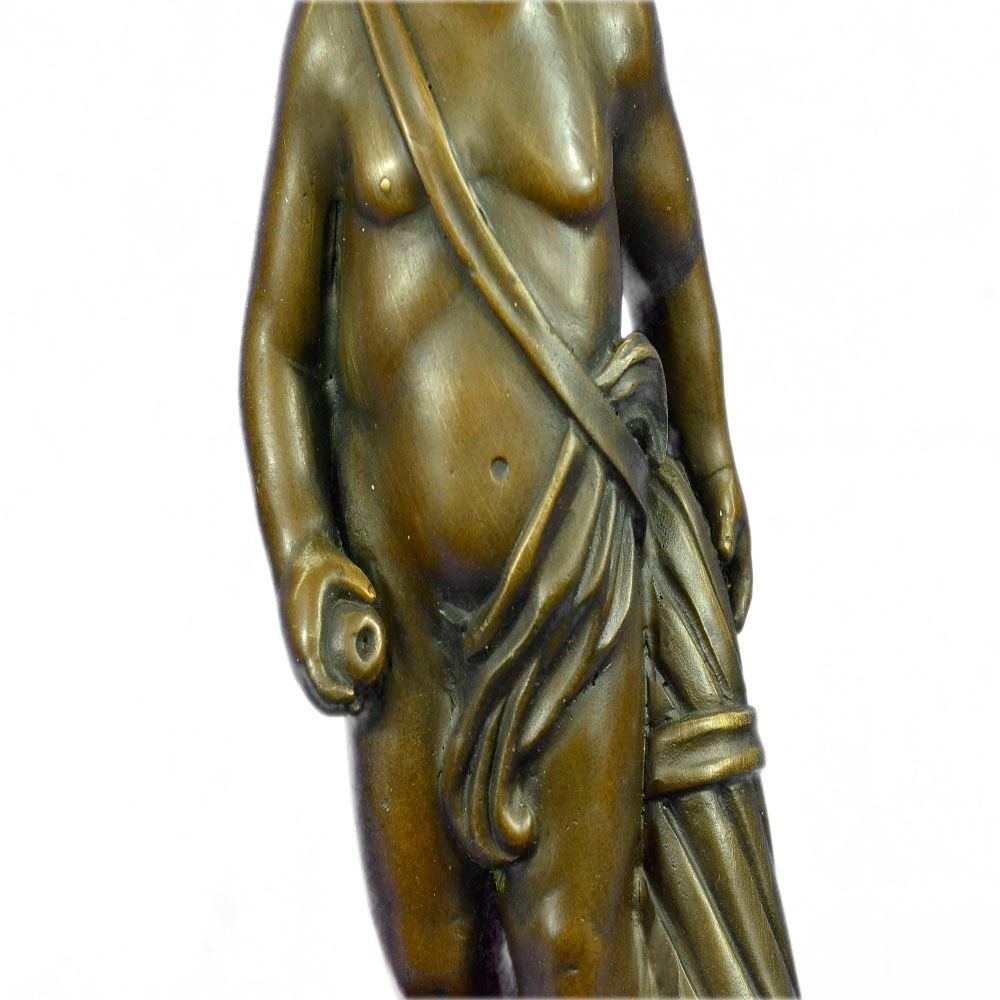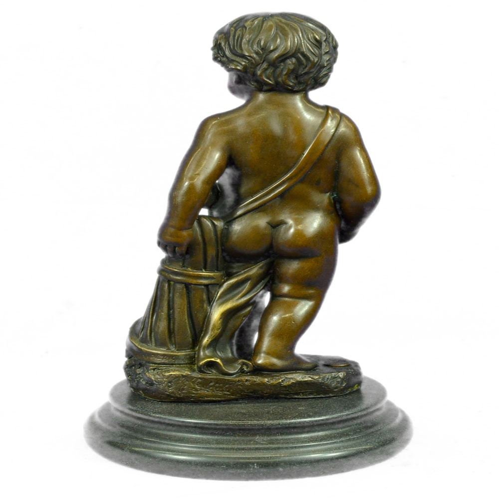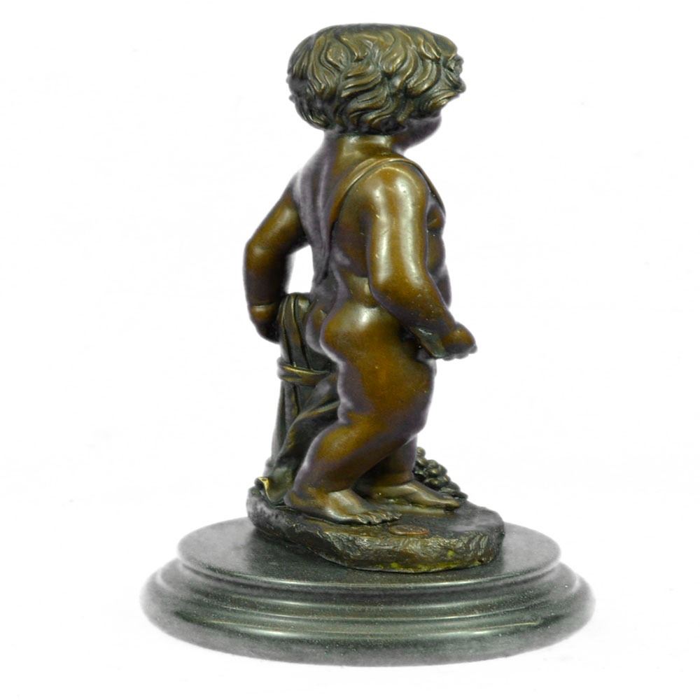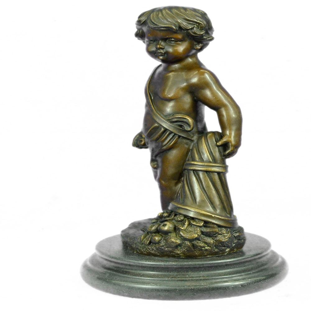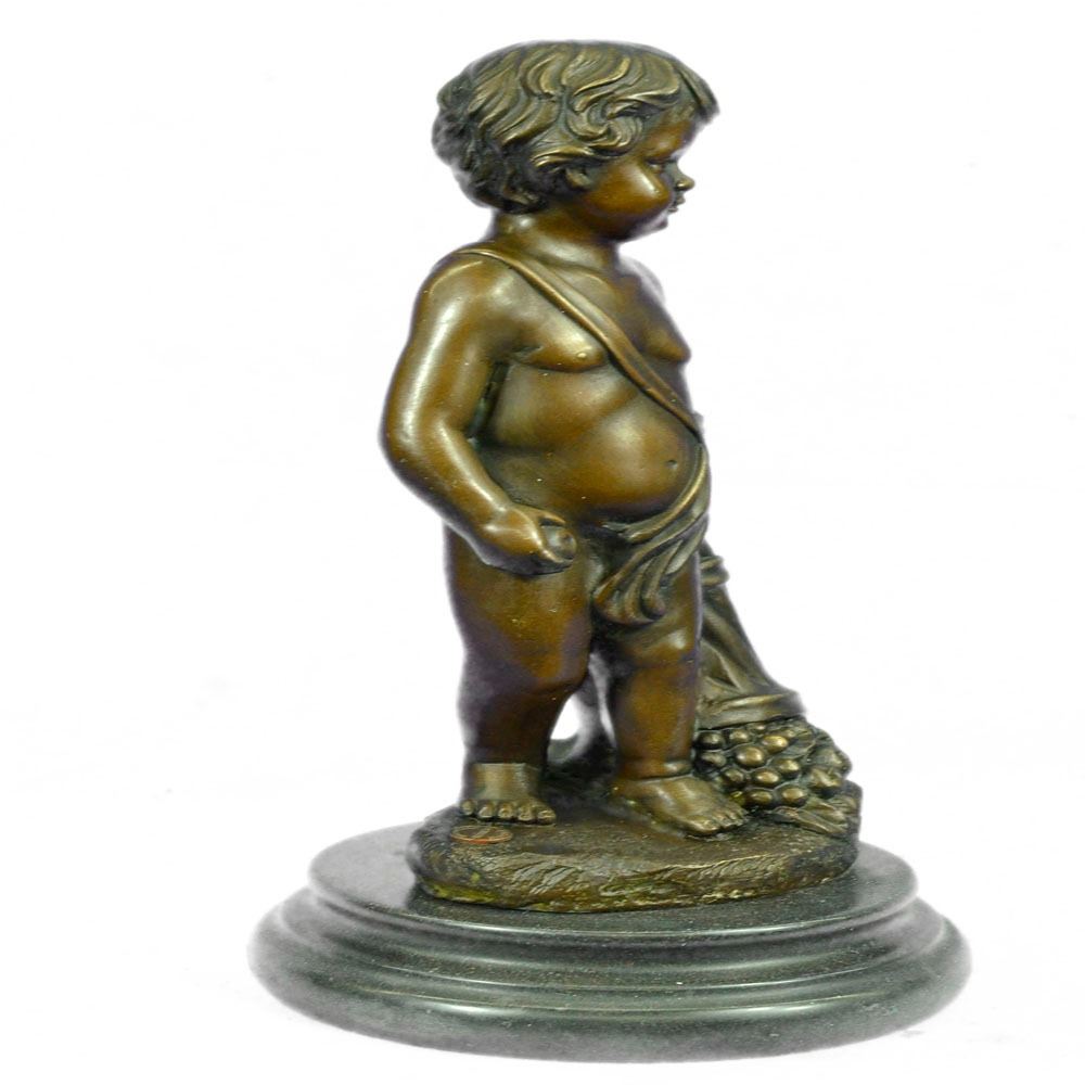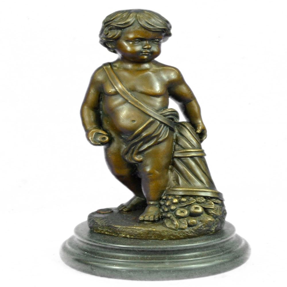 This child is on a mission. He has an almost adultlike expression on his face seared with determination and confidence. His hair appears smoothed and styled. The child is nude except for a cloth that grazes over his lower body. This Sculpture was crafted using the lost wax method and it rests on a marble. Bronze Dimensions with Marble Base: Height 14 X Width 6 inches. Weight: 10 LBS.