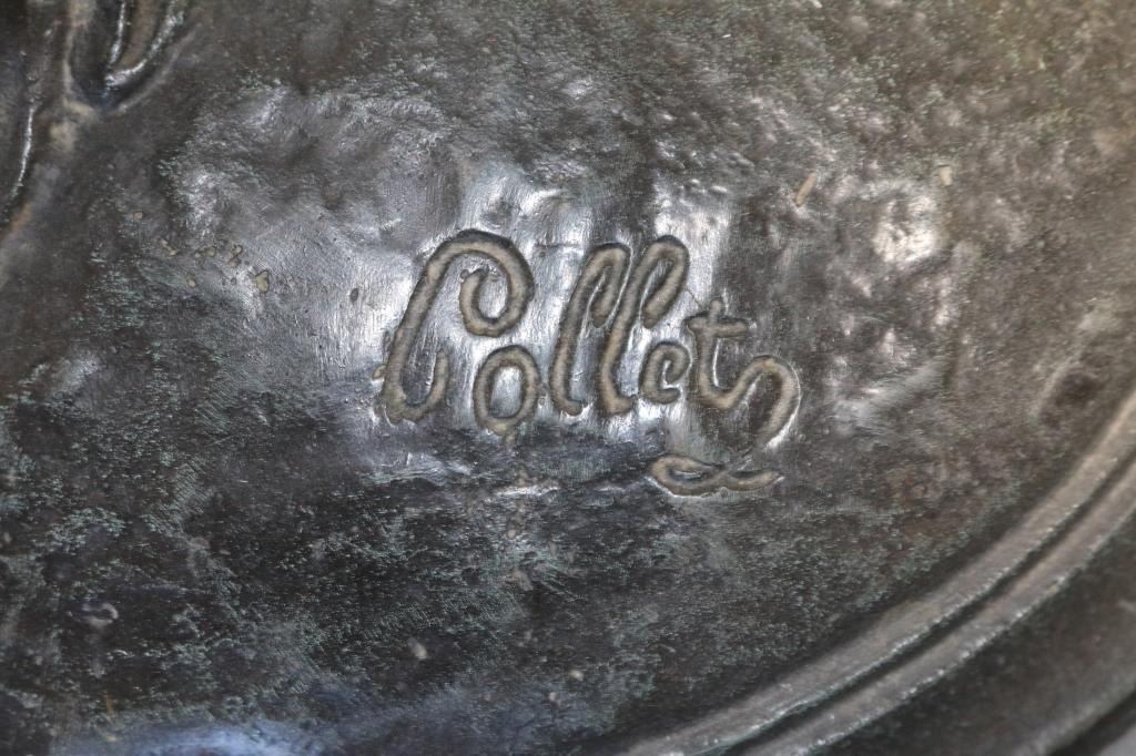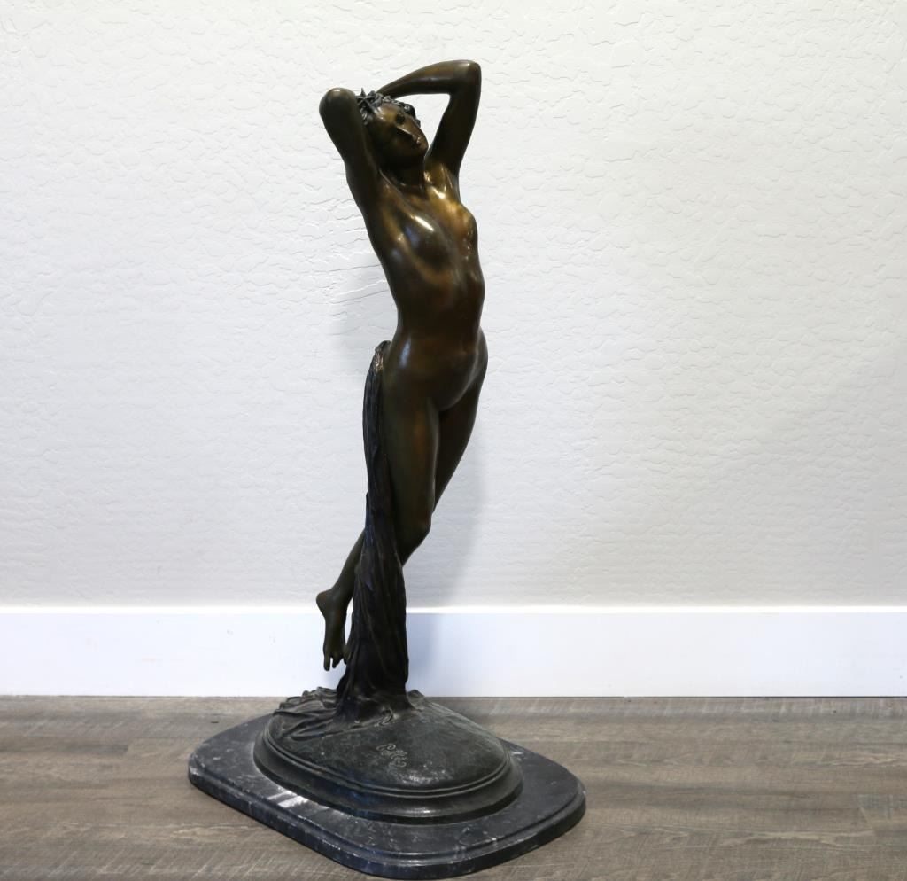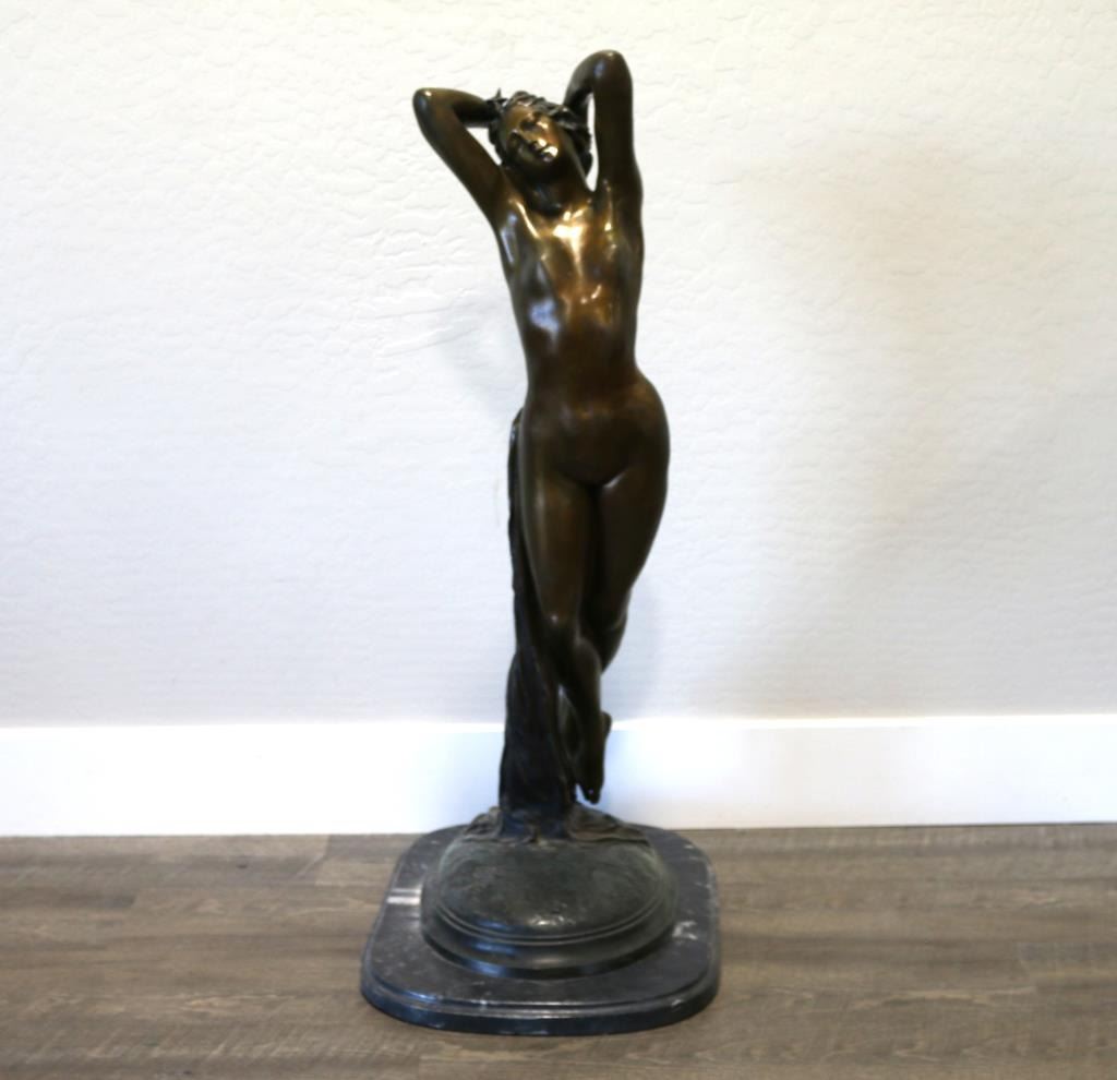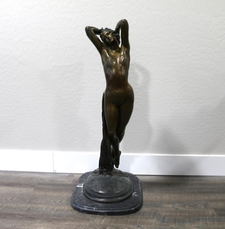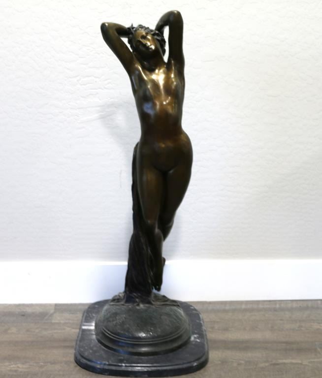 Signed on marble base. Measures 36" x 21". BUYER MUST ARRANGE OUTSIDE SHIPPING!