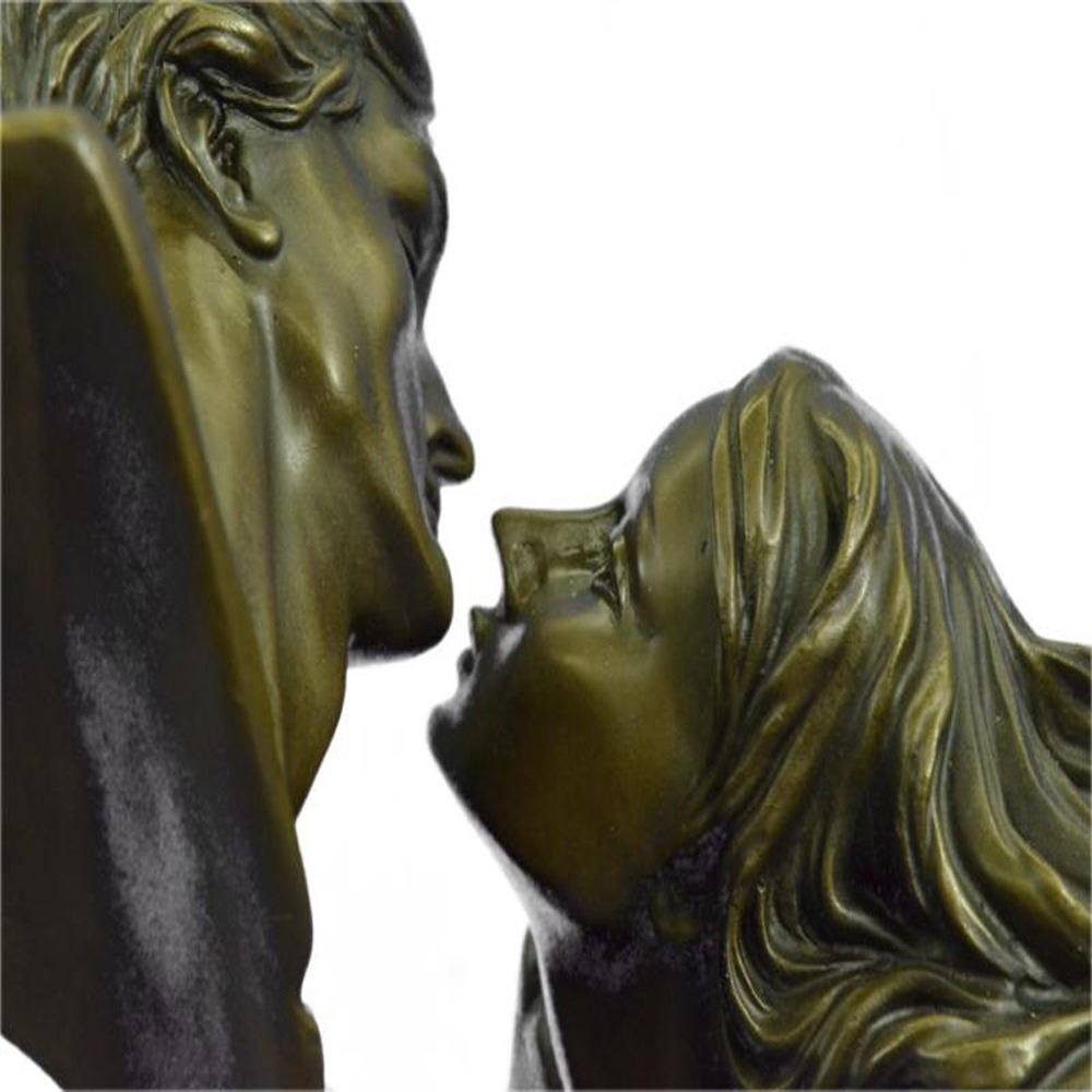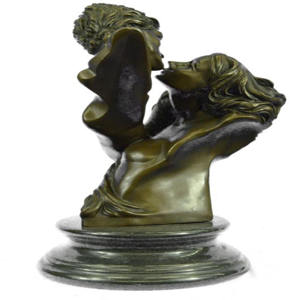 This is a cool romantic Sculpture of a couple in perfect romantic mood. It is full cast with Bronze using the traditional lost wax also known as hot cast method, and resting on Bronze blanket design. It is perfect for interior deacor. This 100% Bronze Sculpture is a vision of nature and serenity set on a marble base. Bronze Dimensions with Marble Base: Height 17 X Width 9 inches. Weight:27 LBS.