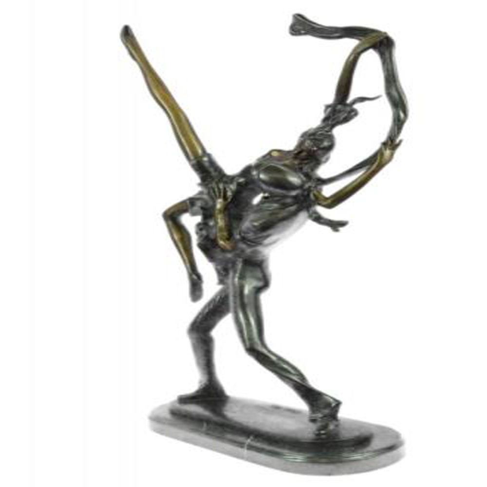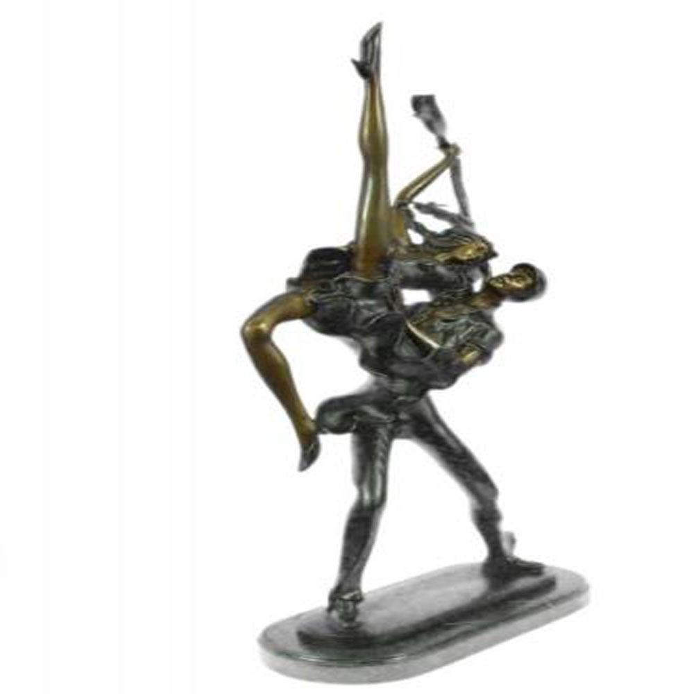 This divine Sculpture of a beautiful couple swinging away to the famous Lindy Hop is astonishing. He quickly but very steady lifts her as she kicks her left leg up in the air. Adding flavor to the dance she holds a piece of cloth and is wearing a mini dress that is cut very low around her cleavage. This Sculpture was cast using the ancient old Lost Wax Method stained in a two tone brown patina finish for preservation and mounted atop a marble base. Bronze Dimensions with Marble Base: Height 26 X Width 18 inches. Weight: 20 LBS.
