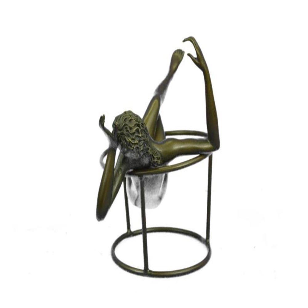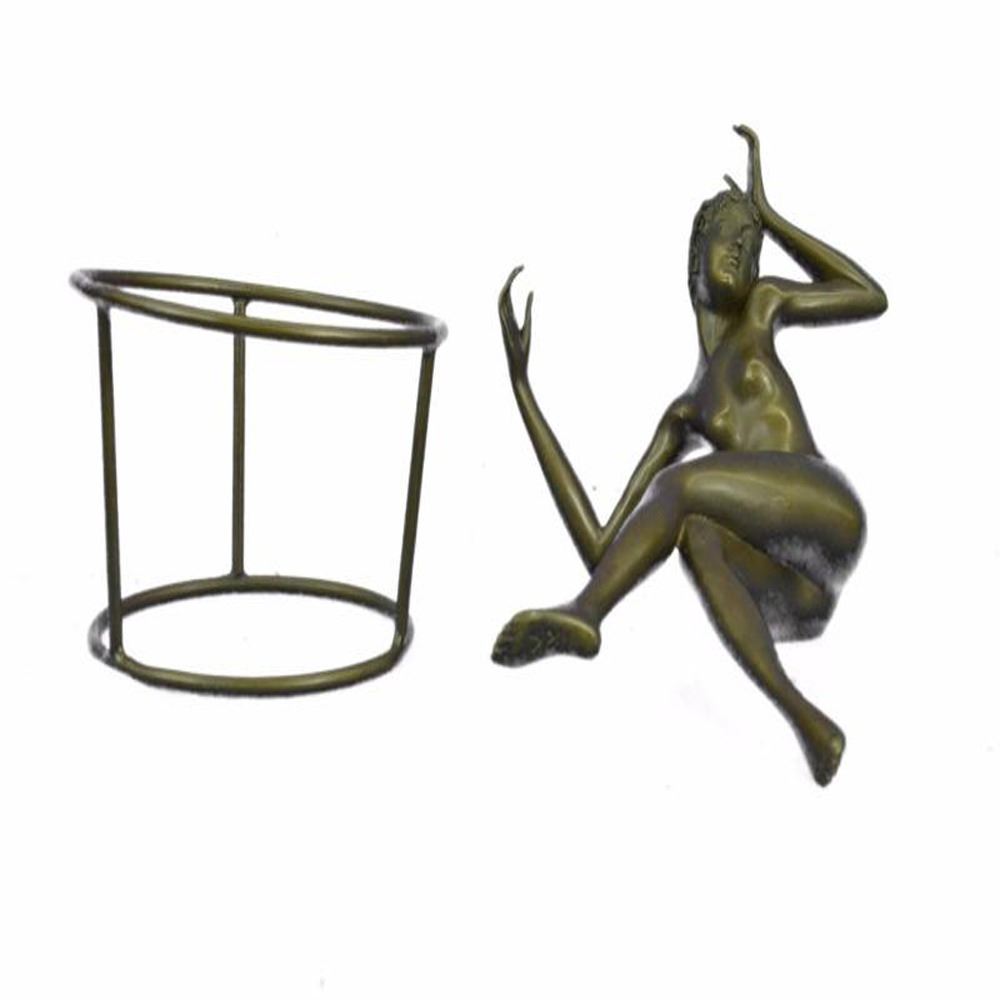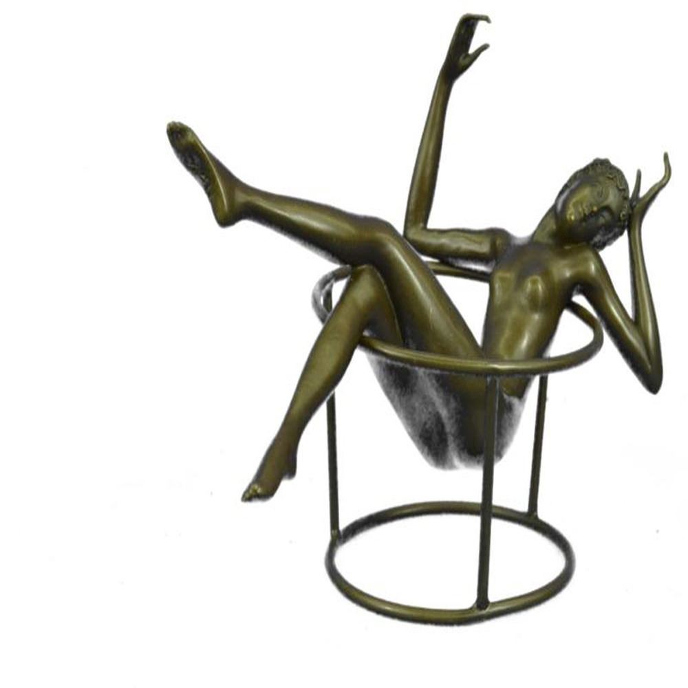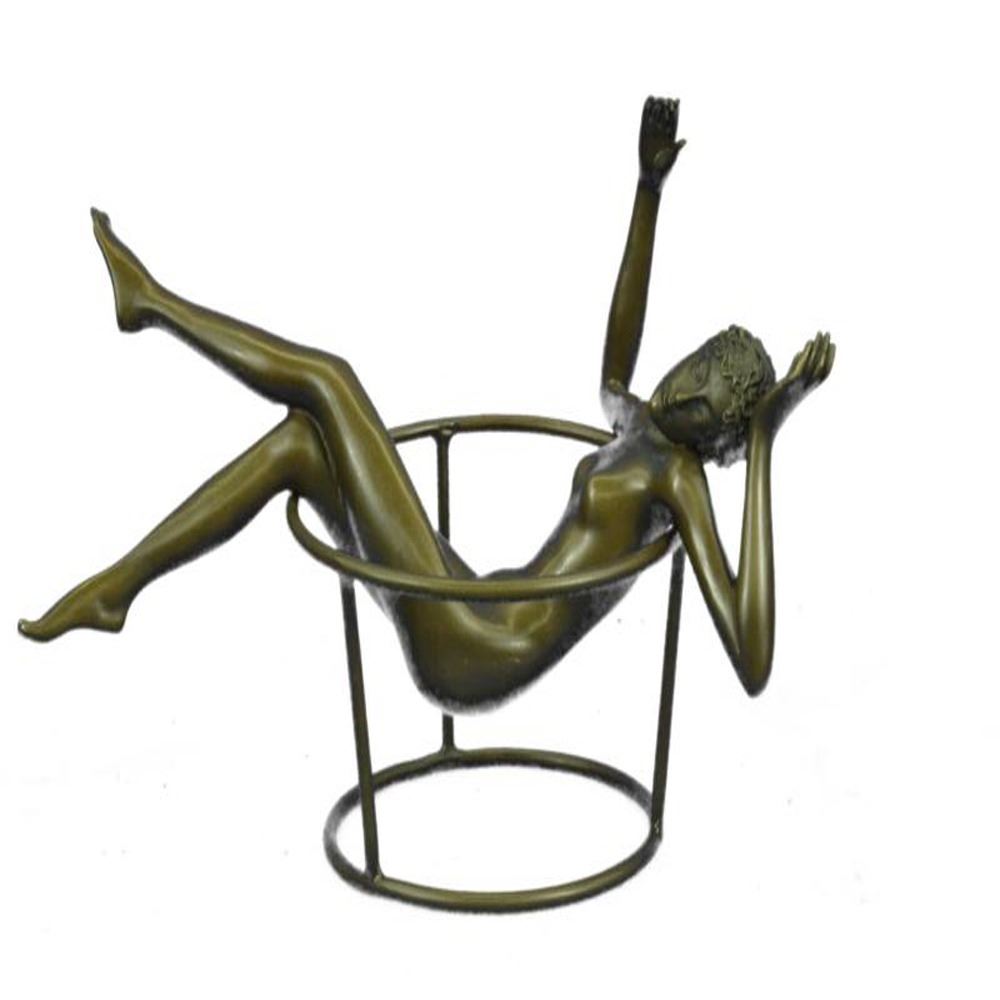 She lays down to a deep sleep, her nude body glowing in the sunlight on a beech chair. As she resting she takes her bowed top off and slowly brings it down exposing her breasts. She looks off into the distance and wears a straight face as her hair falls softly frames her face. She thinks to herself while she undresses that she will never get over you and yet she will always treasure her lost romance for you, even as she prepares for another lover. This Bronze Sculpture was cast using the Lost Wax Method it has as light brown and brown patina. Bronze Dimensions: Height 7 X 11 inches. Weight: 4 LBS.