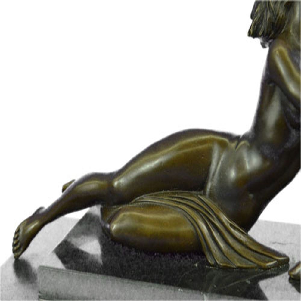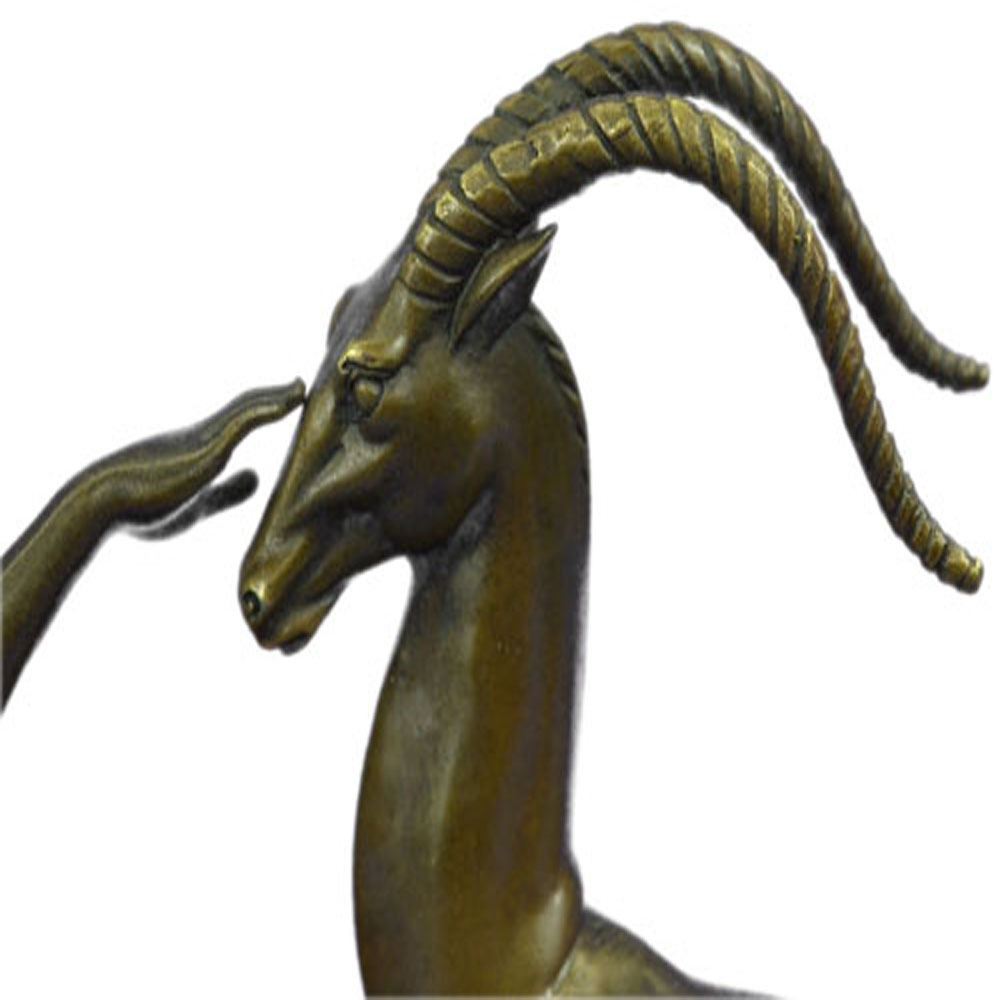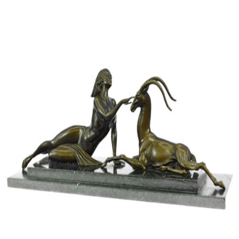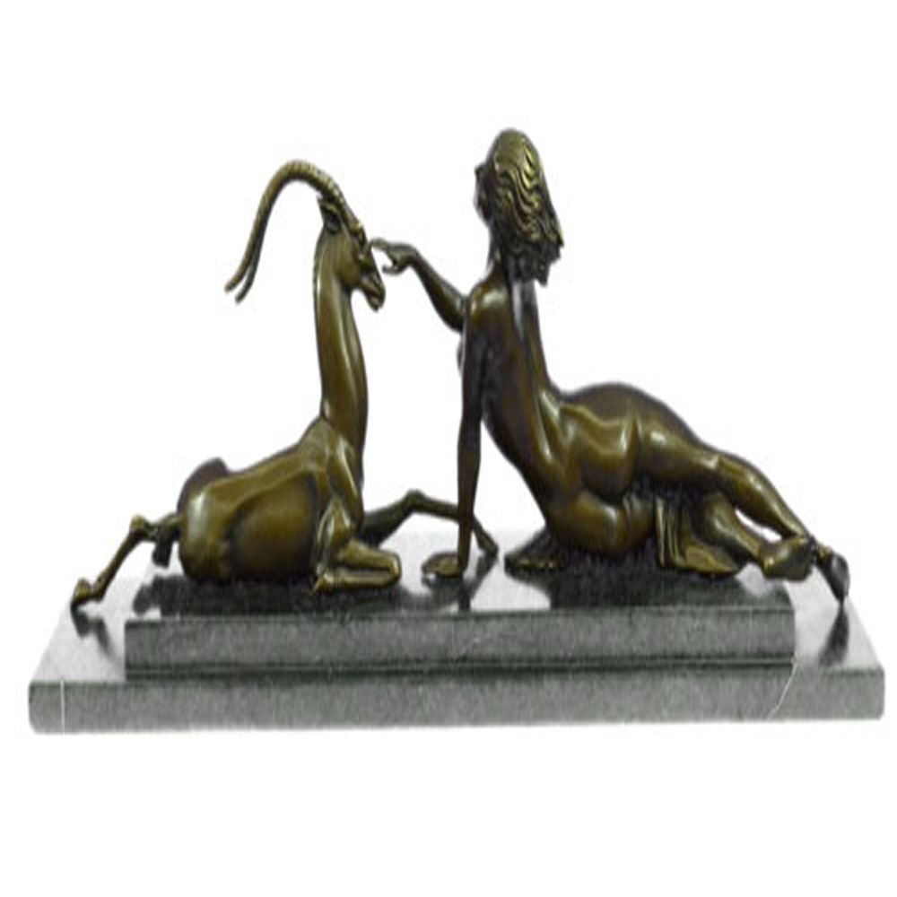 Bronze nude petting a goat. This exquisite sculpture depicts a naked woman petting a goat head. This attractive piece would enhance a garden or a patio. It would make a beautiful gift for anyone who loves classic sculpture and for collectors of fine bronze. Bronze Dimensions with Marble Base: Height 7 X Width 19 inches. Weight: 15 LBS.