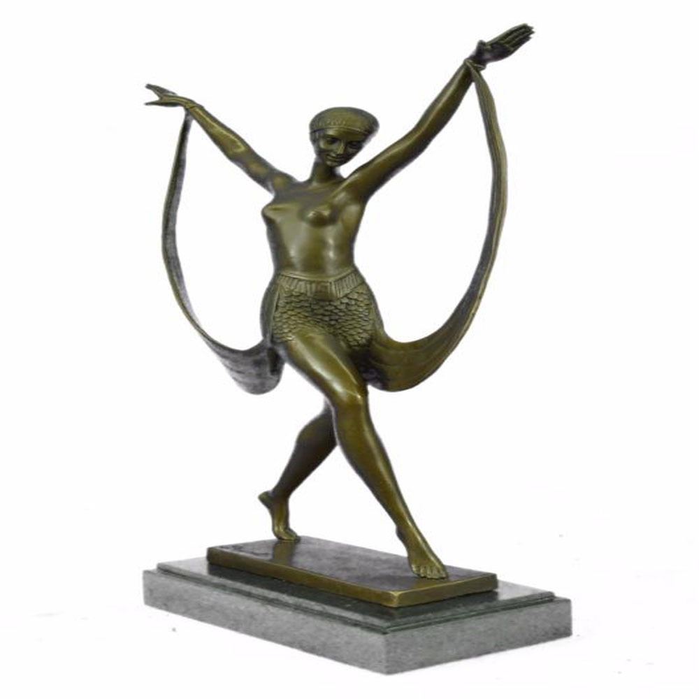 It is truly elegant, this is an excellent Museum quality Bronze work of art. This faithfully reproduction of distinguished highly regarded Faraway, prized for his well known sensual works. Features a young sophisticated beauty poised in mid motion arms gently swaying and body raised on tip toes. A subtle gesture of refined movement and power. Beautifully mounted on a marble base and would make a great gift for yourself or any person who appreciates an extraordinary work of art with a striking patina of Bronze and copper tones, highlighted by a subtle gunmetal silverfish finish on the Lady dress and mount it onto a marble base. This is a stunning piece with wonderful movement, elegance and grace. This has been painstaking cast in Bronze using the highest quality lost wax casting method. Bronze Dimensions with Marble Base: Height 15 X Width 10 inches. Weight: 10 LBS.