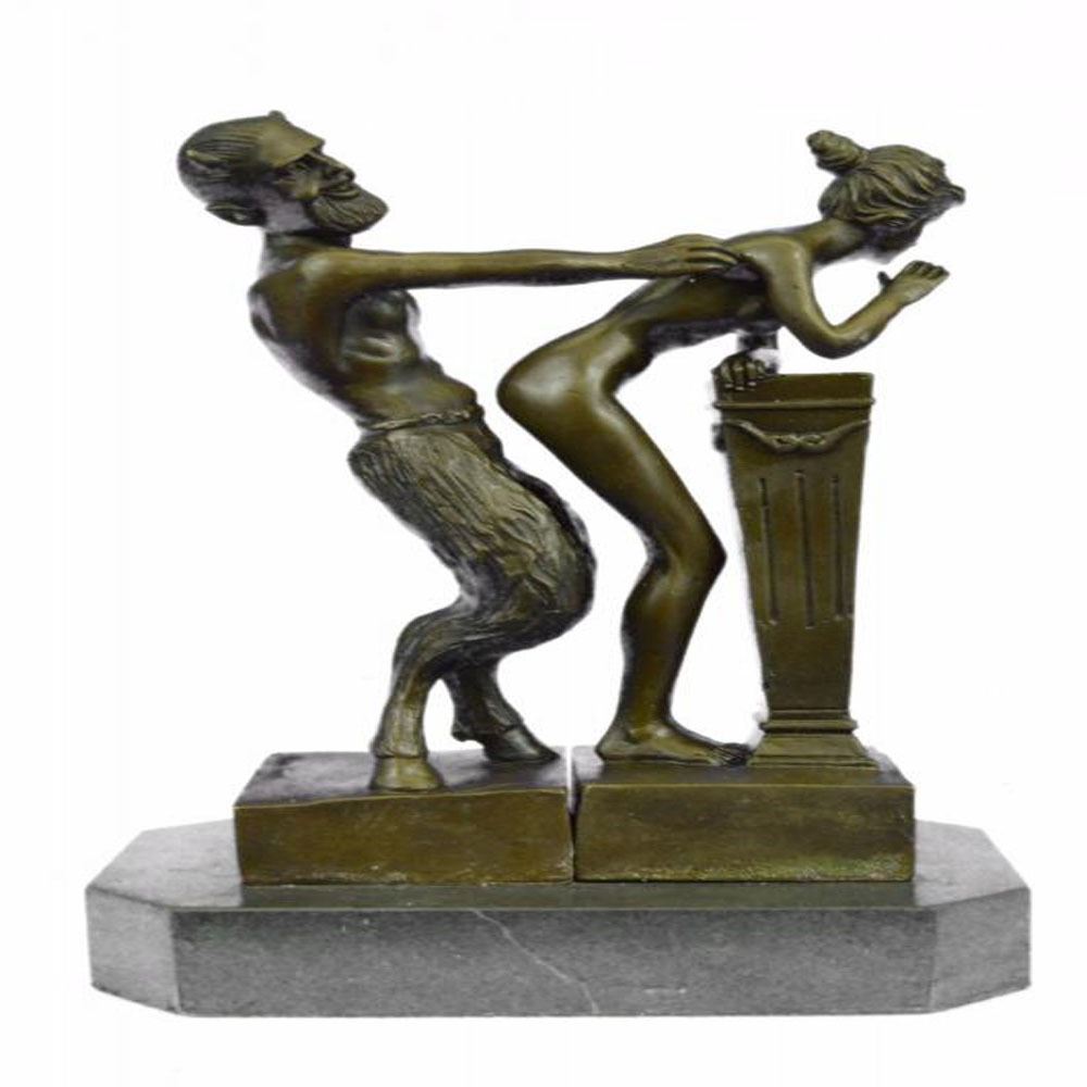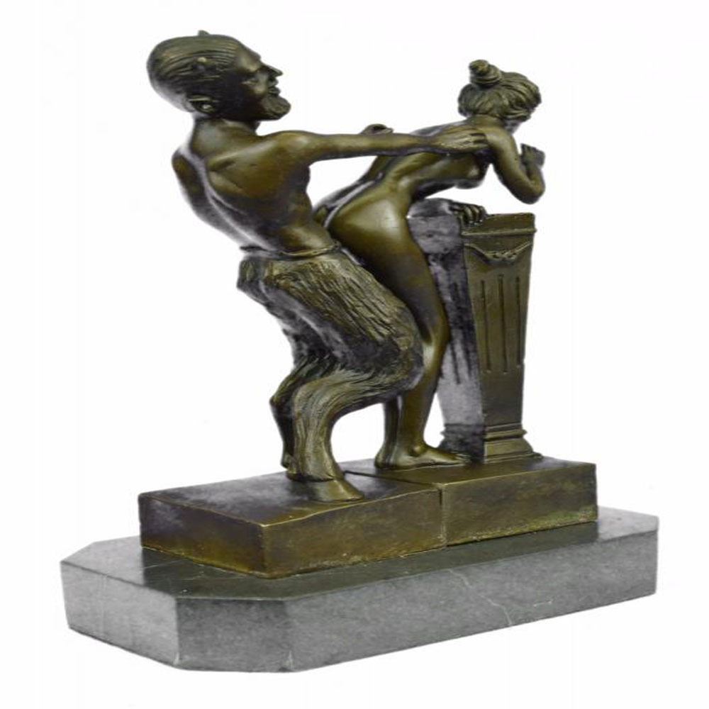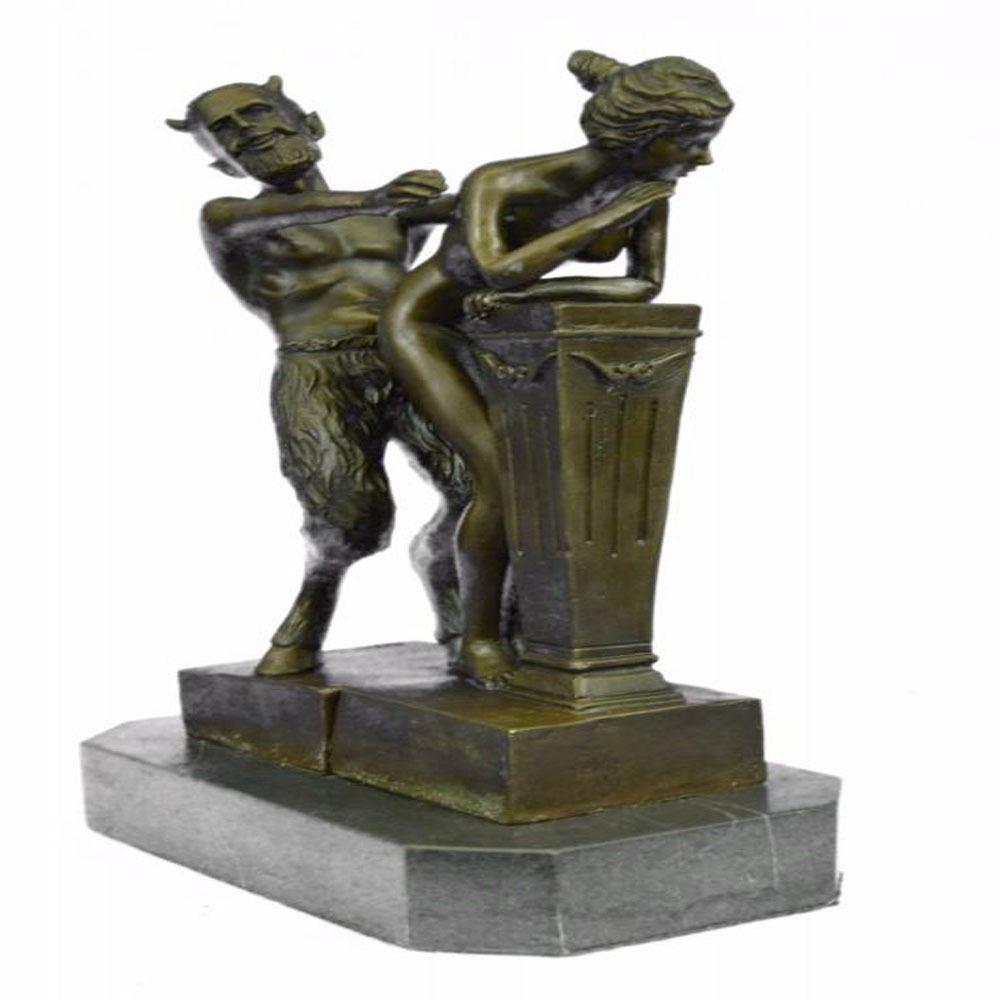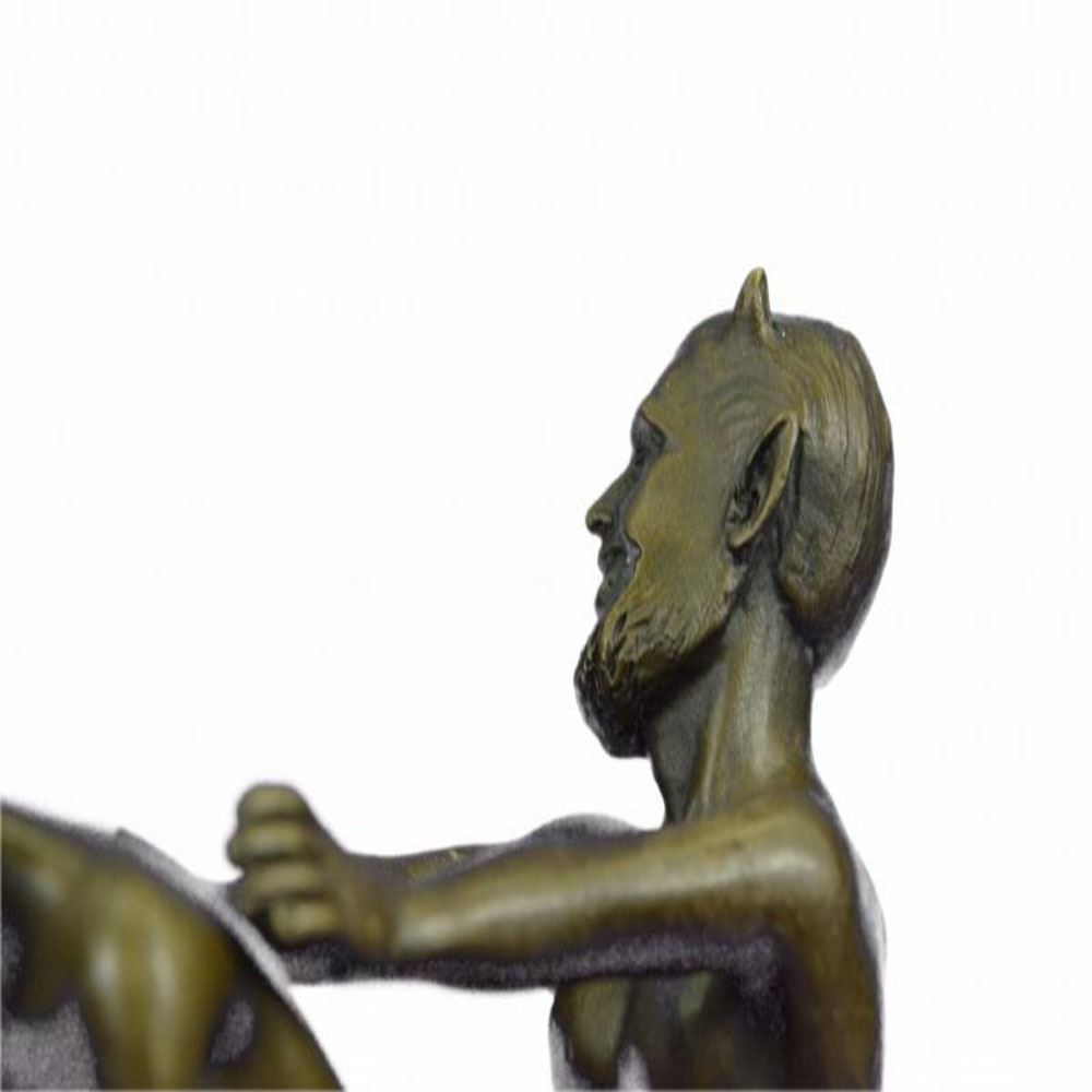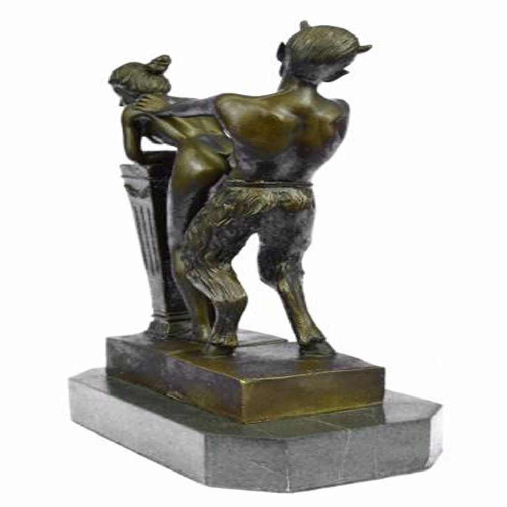 The Devil and the Beauty. This is a great two partly Erotic Act Vienna Bronze. The Motiv a naked devil is touching the shy nude virgin from behind. Thanks to the two partly design. The devil can be placed in many different positions. Also nice to watch the face to face demonstration or the side fusion. A focal point in every exhibition. From the famous designer Bergman, designer of countless lovely erotica figures. This Sculpture was crafted using the lost wax method and it rests on a marble base. Bronze Dimensions with Marble Base: Height 10 X Width 7 inches. Weight: 8 LBS.