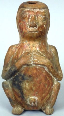 cocoa leaves, approximately 3' x 6" in very good to excellent overall condition with considerable original paint and design remaining; most likely from the Columbian area of South America. Circa 1200-1400 A.D.