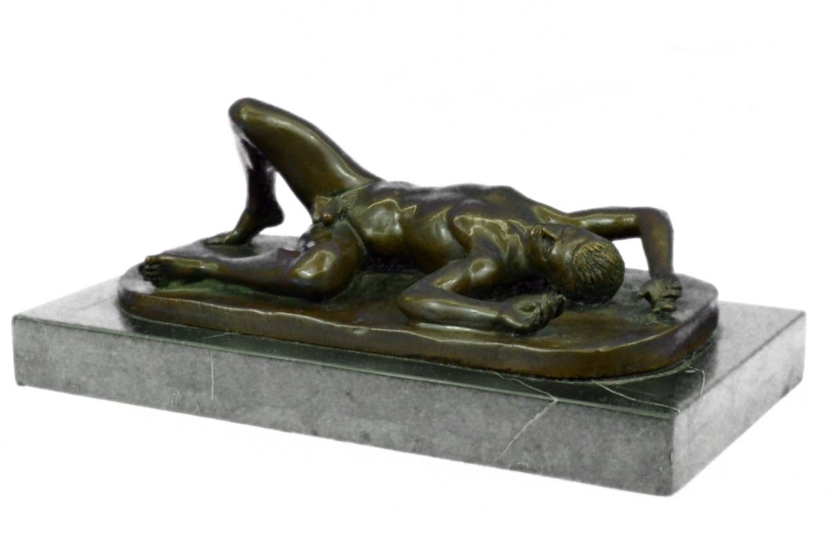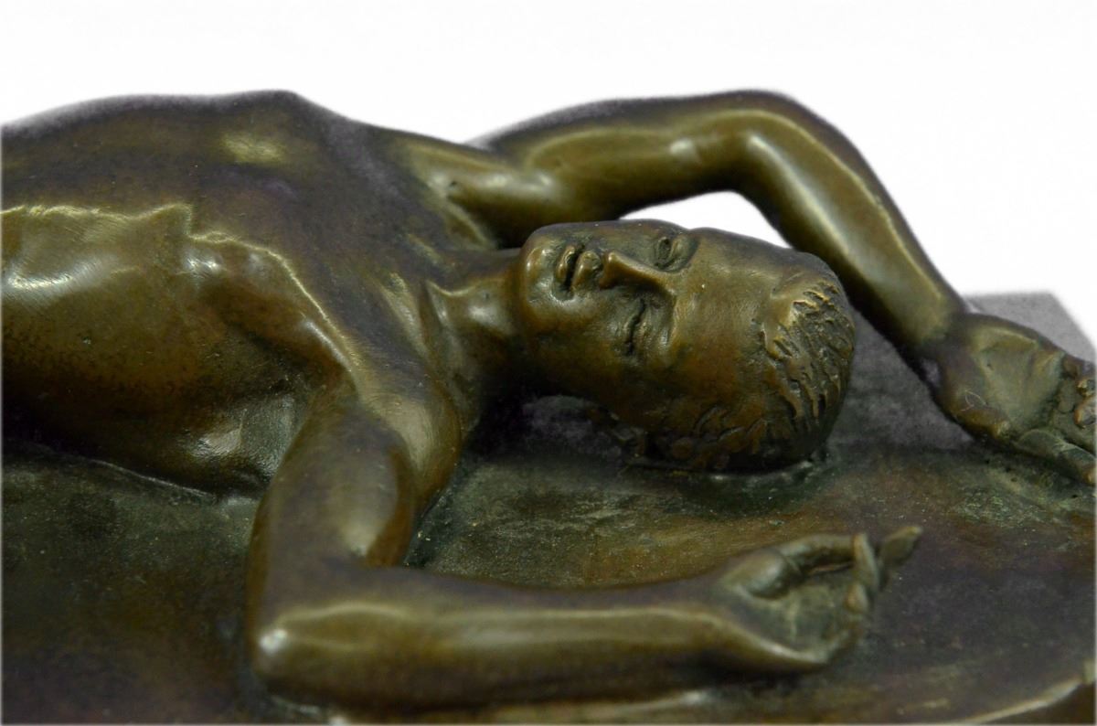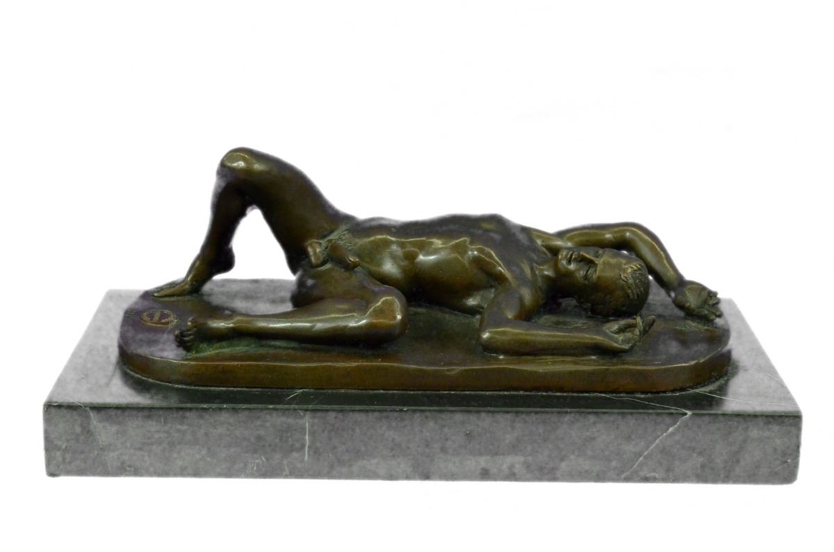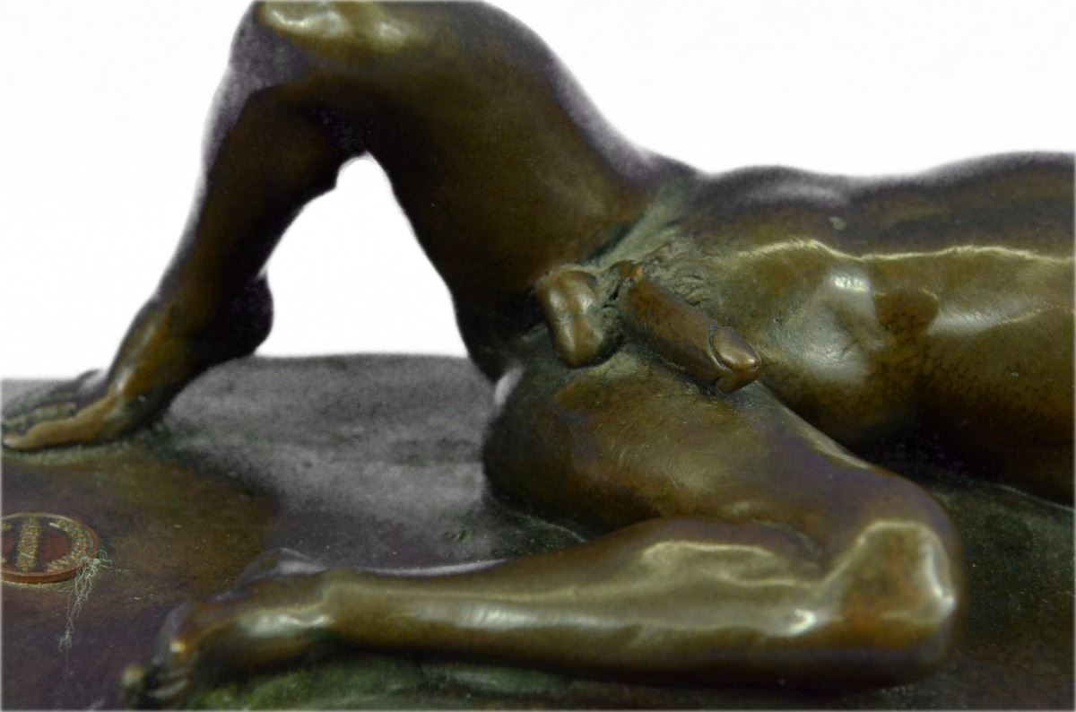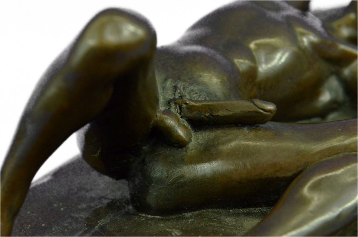 He Lays Casually On The Bed, Exposing His Amazing Body. His Intense Eyes Dare You To Touch Him. This Proud Gay Man Stretches His Muscular Arms Behind His Head And Poses For His Admirers. He Is A Lean And Muscular Model. Take A Gander At His Chiseled Torso And Chest. Please Try Not To Faint. He Would Be Right At At New York'S Chippendale'S And Would Drive All The Guys And Dolls Mad With Desire. There Is Something Sexy But Soft About Him. Seductive But Intimidating. Warm But Burning Hot. He Can Provoke An Assortment Of Emotions In Anyone. Let Him Bring Out Your Erotic Desires. This Confident Stud Was Cast Using The "Lost Wax Method". 100% Handmade Bronze And Carefully Detailed This Is A Priceless Unlimited Edition Piece Of Work And Is Signed By Artist Nick. Mario Nick Is A Very Talented Young Artist Who Works Diligently With Our Foundry. He Was Born In 1974 To A Wholesome Italian Family. He Started Drawing At A Young Age And As The Years Went By He Began Studying Art And Working With Sculpting. He Moved To France To Find A Better Understanding Of Art And Studied There As Well. After France He Moved To Spain And Was Discovered By Our Foundry European Bronze He Has Partnered And Works Exclusively With Our Finery. Bronze Dimensions With Marble Base:Height 5" X Width 11" Marble Dimensions: 11" X 6"Height Without Base: 4" Weight : 14 LBS.