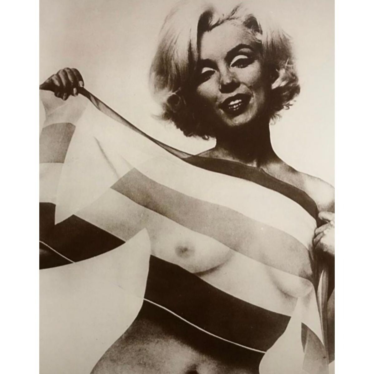 Vintage from the 1990's sepia-tone photo print, on heavy cardstock. 1960's Nude Marilyn Monroe behind see-through scarf. 8" X 10".Â