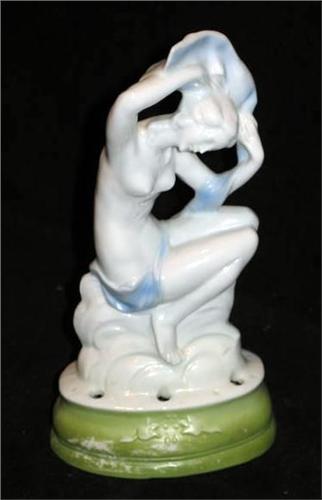 Nude Porcelain Flower Frog, Germany, 8" tall.