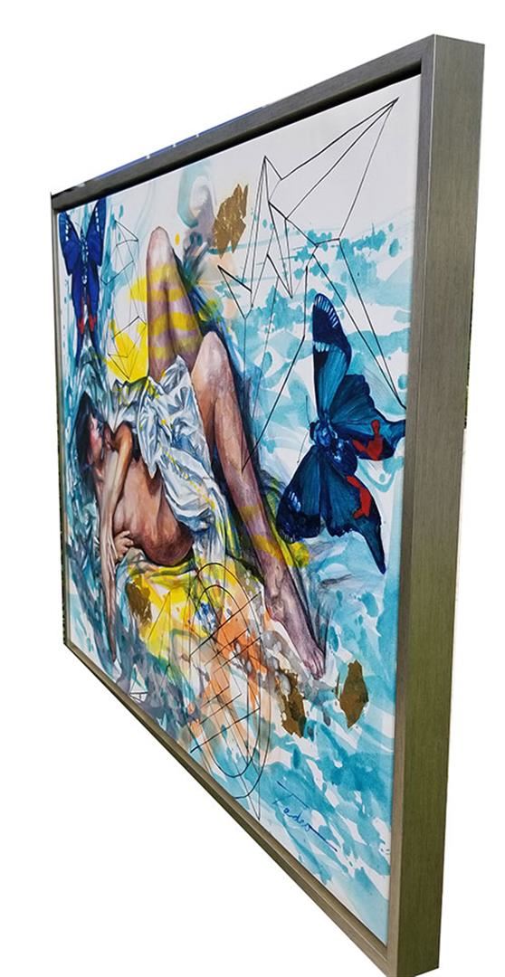 Brilliant original acrylic and oil pastels on canvas. Hand signed by artist. This artwork comes framed, ready to hang. 42x32 Artwork 40x30