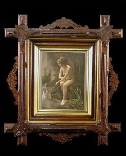 Nude Tinted Parlor Photo by C. Gilhousen in elaborate frame dated 1917