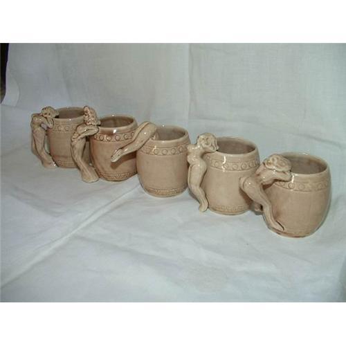 Unique set of 5 coffee cups, each has a nude woman for a handle.