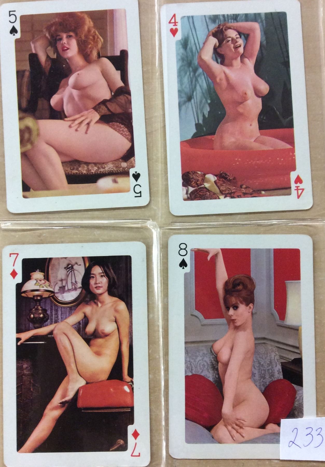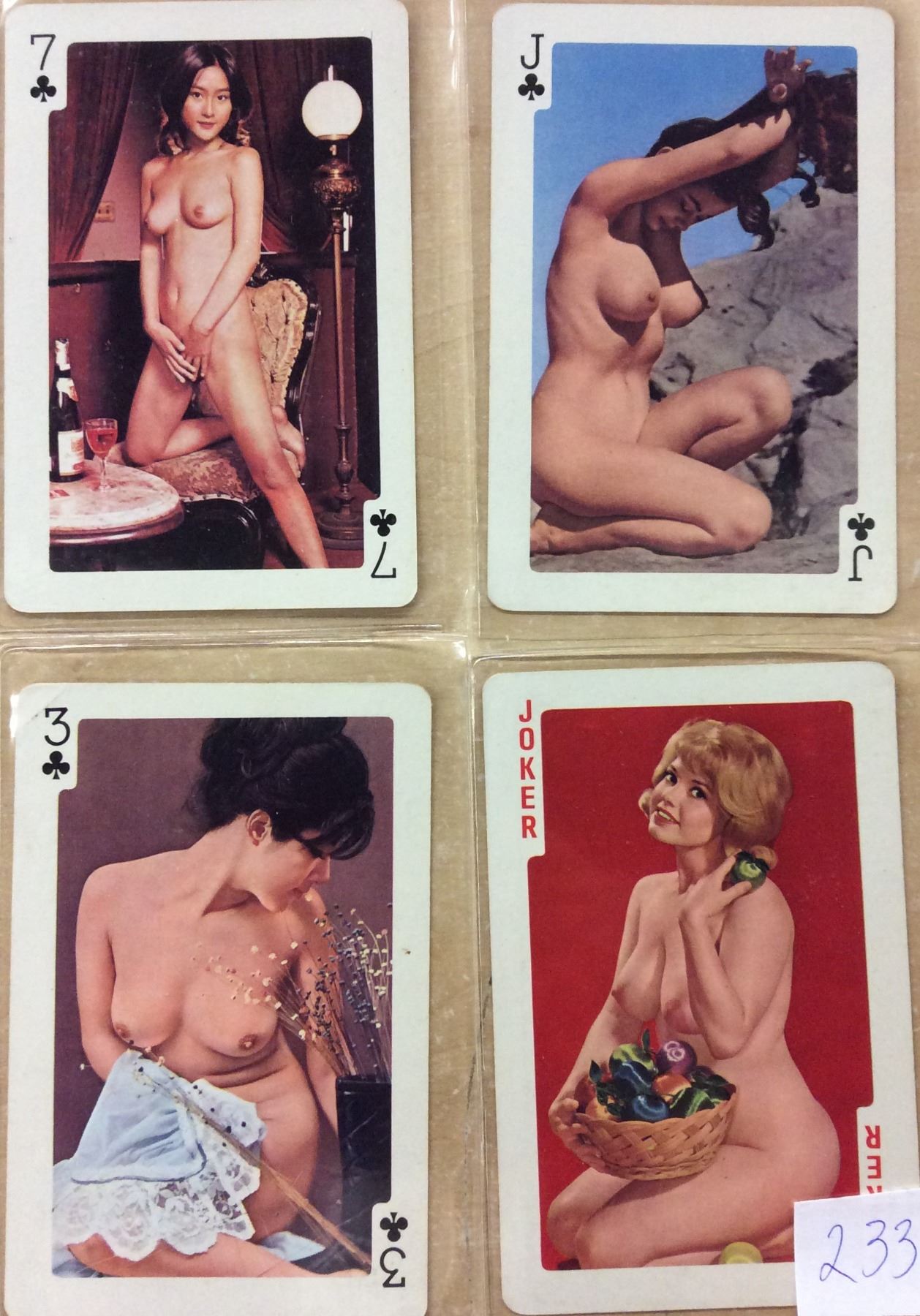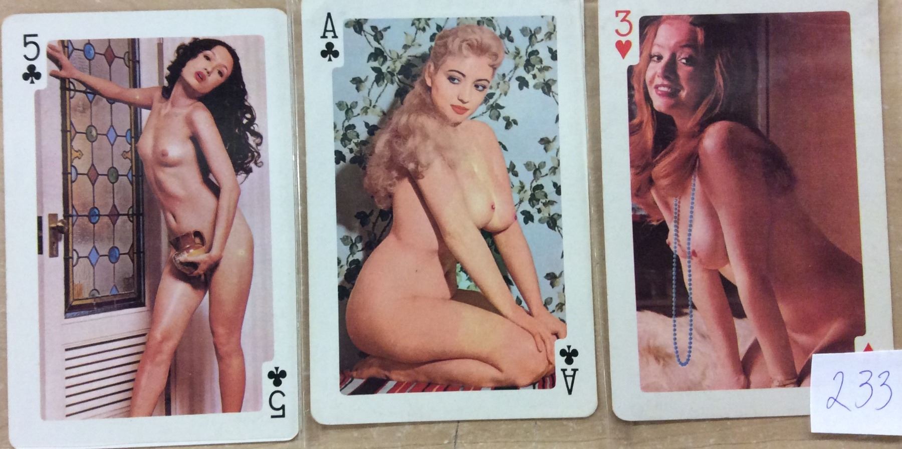 11 playing cards with nude women. 5.74 by 3.75 inches. Vintage.