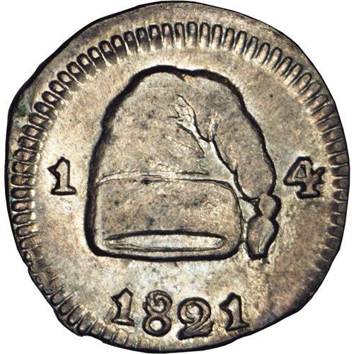 Nueva Granada 1/4 Real 1821, KM79.1, MS63 NGC, very rar Nueva Granada 1/4 Real 1821,