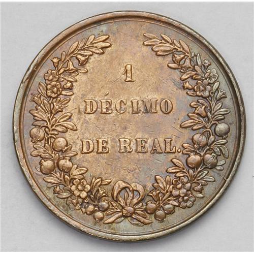 Nueva Granada Decimo 1848, KM102, XF, cleaned long ago Nueva Granada Decimo 1848,