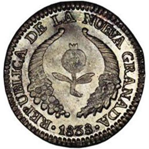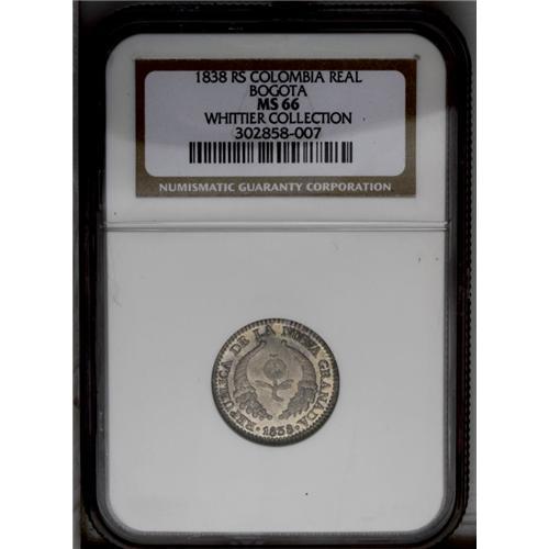Nueva Granada Real 1838-RS Bogota, KM91.1, MS66 NGC, li Nueva Granada Real 1838-RS Bogota,