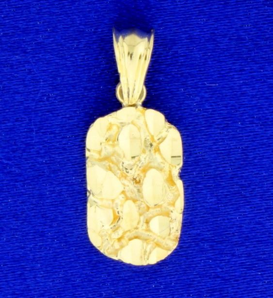 In 14k yellow gold this pendant is 1inch long with bale. 2.8g