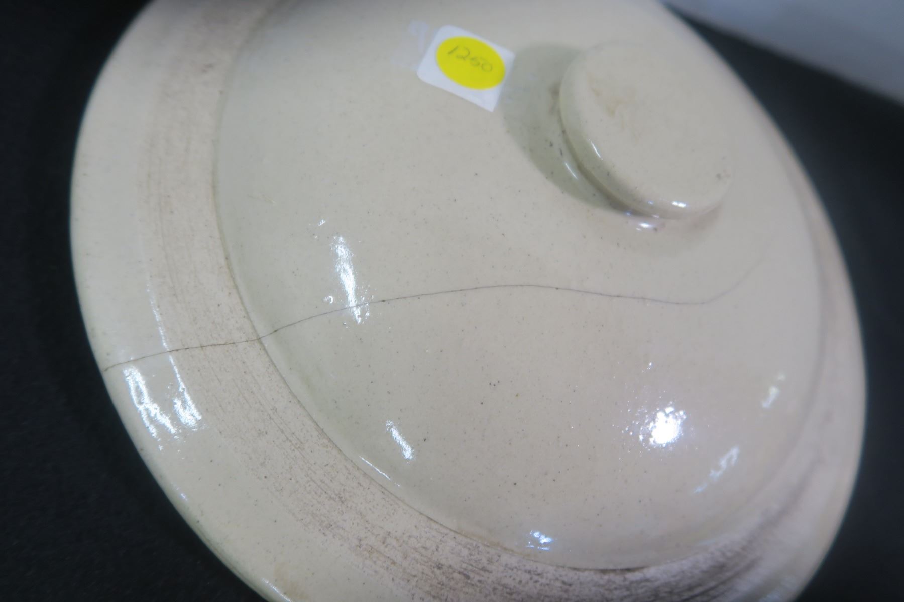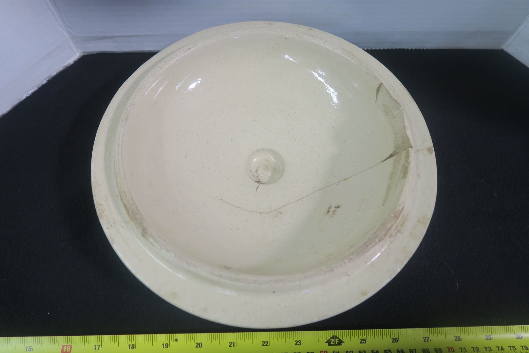 Number 3 Crock Lid Hairline Crack, Chipped, 12" Round