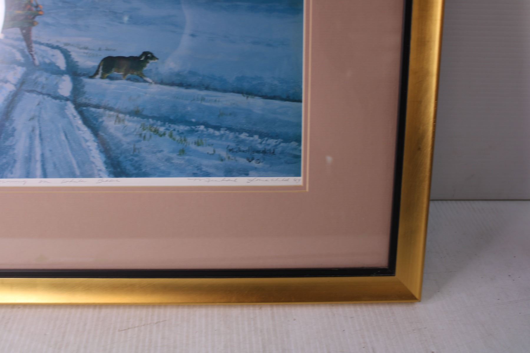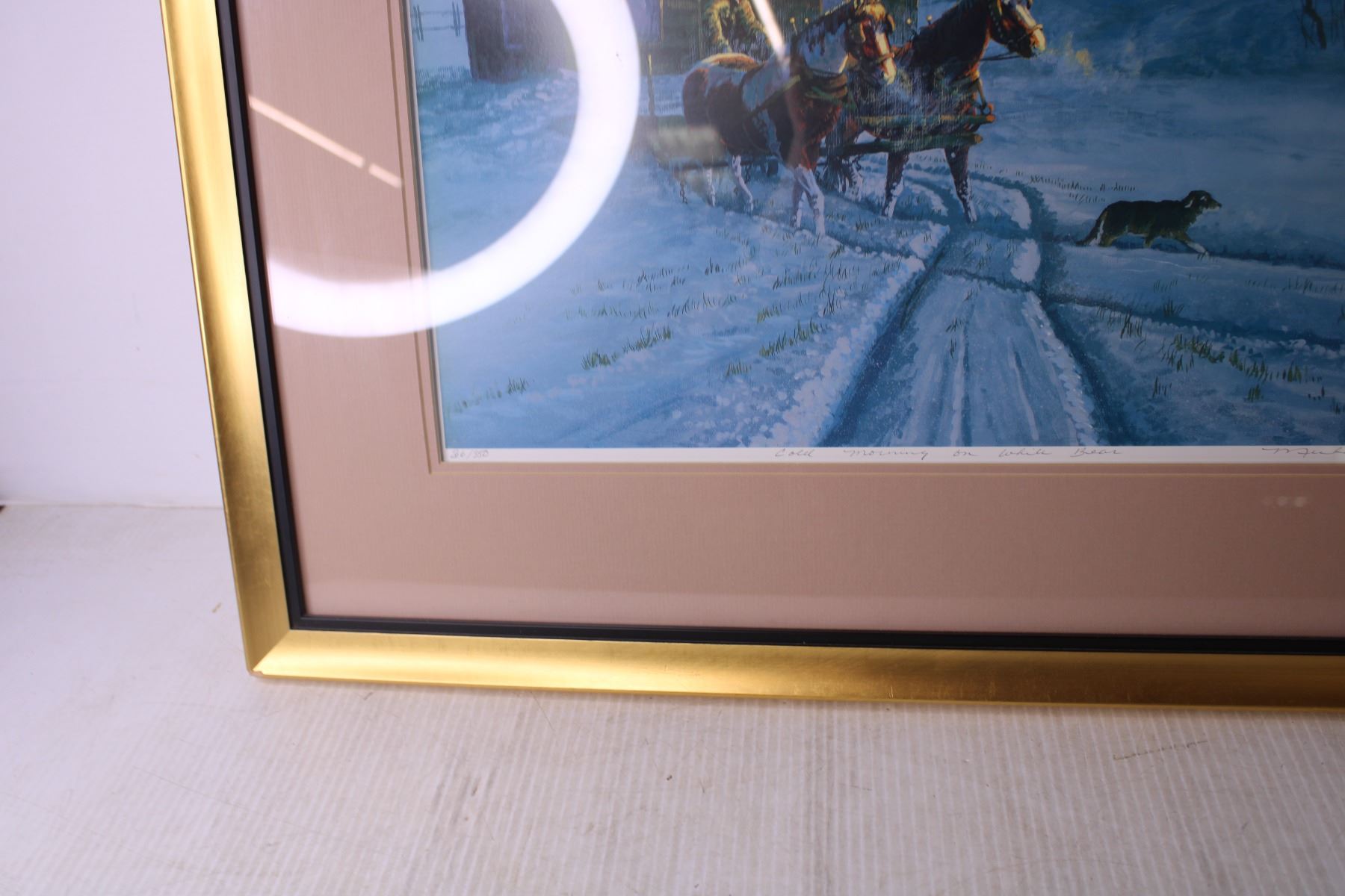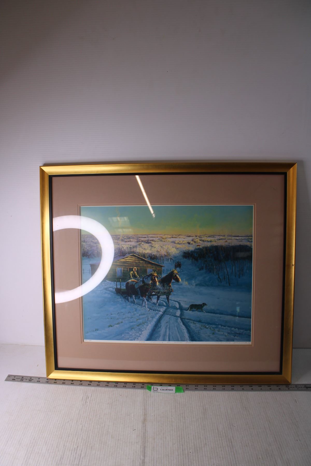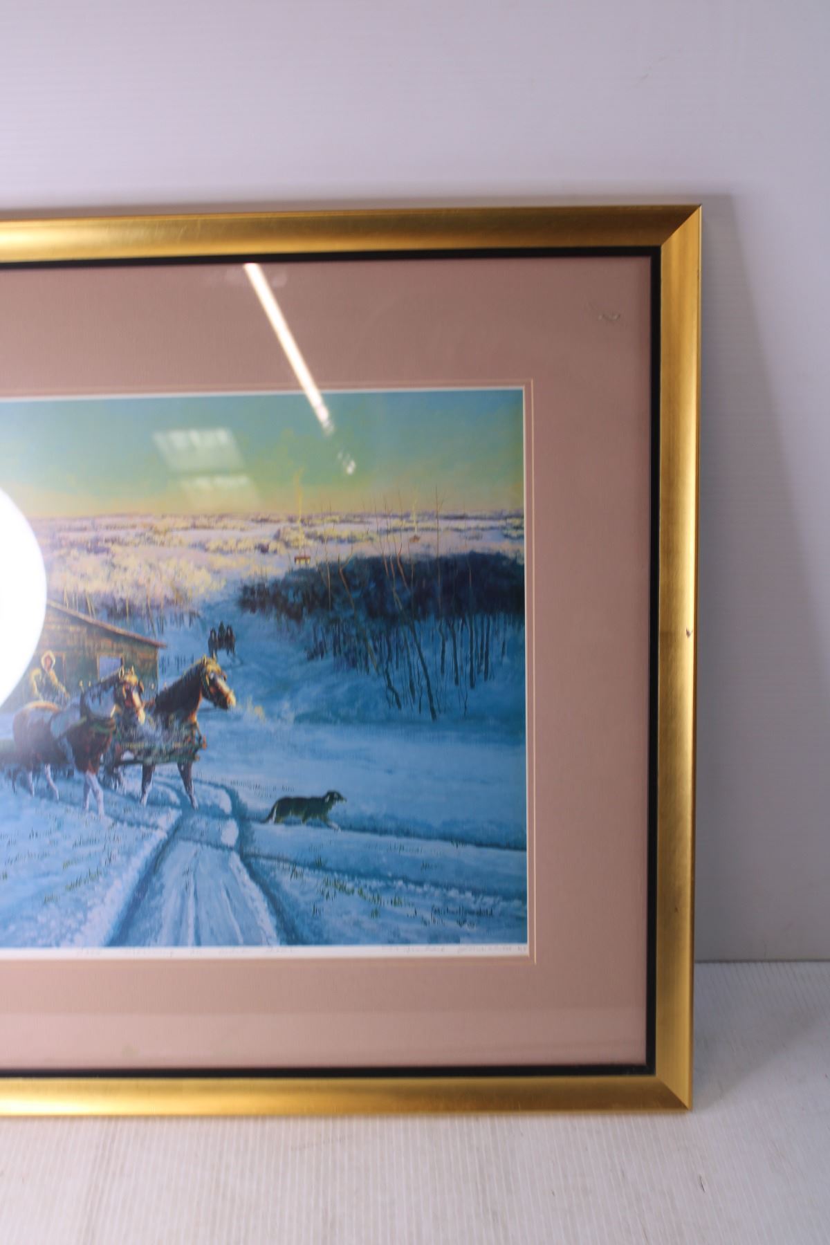*Numbered Signed Print by Cree Artist Michael Lonechild Called Cold Morning On White Bear (36/350) - 24" x 27 1/2"