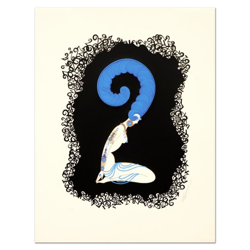"Numeral 2" is a limited edition serigraph on paper by Erte (1892-1990), numbered and hand signed by the artist. Includes Certificate of Authenticity. Measures approx. 17" x 22.5" (border), 12" x 18" (image). Due to the age of this piece and the delicate nature of the paper it may have some slight imperfections.
