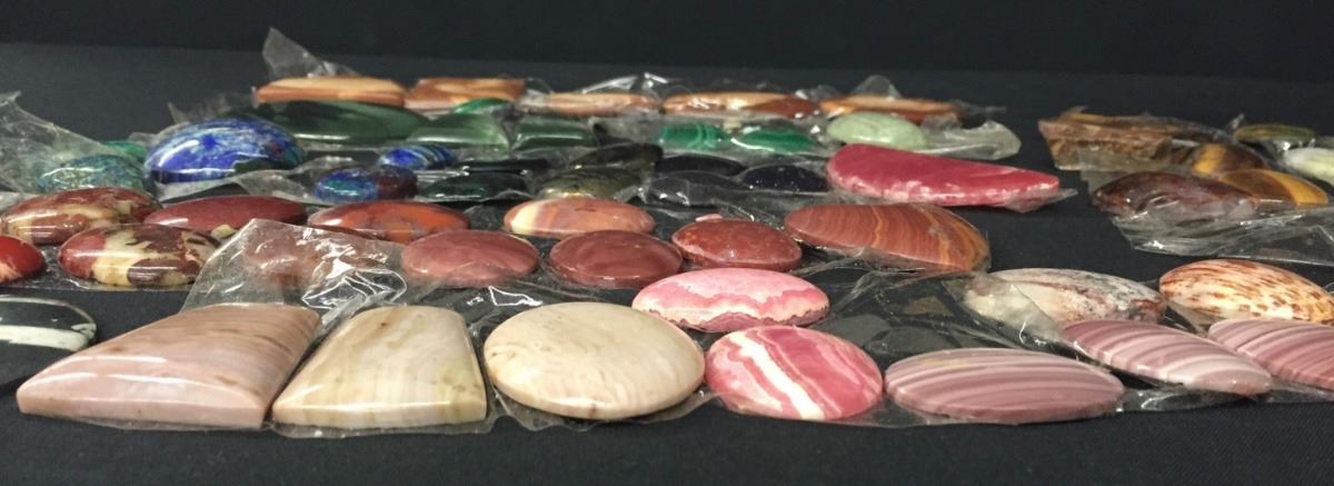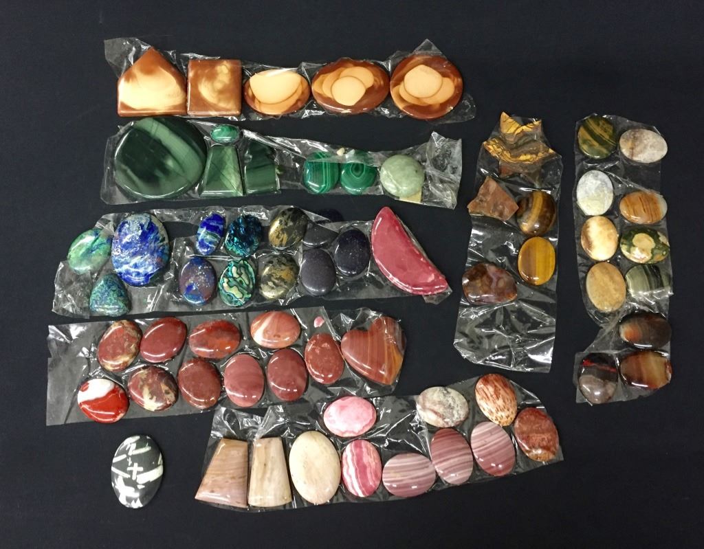 Over 60 various cabochons included in this lot! Please look closely at pics - they are an important part of our description. Shipping: There will be a $7 handling / packaging fee for shipping this lot. The actual cost of postage will be added on top of that.