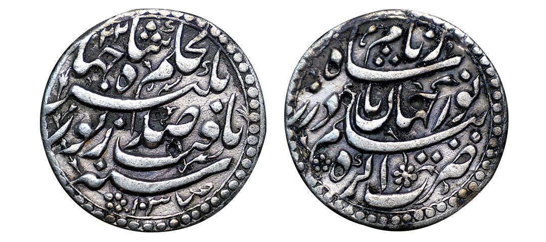 Nur Jahan in the name of Jahangir (c. 1611-1627 AD), Silver Rupee, 11.27Grms, 1037 AH/RY 22, Agra Mint; (KM # 168.1). Floral design throughout, Bold Strike, With Dotted Borders on both sides, About Uncirculated, Very Rare in this grade.