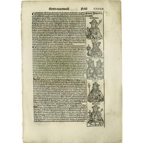 Nuremberg Chronicle / Shakespeare's 4th Folio Two Early Book Leaves: Shakespeare's [I]Fourth Folio