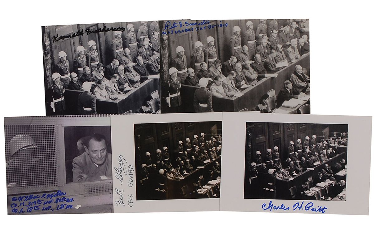 Five glossy 6 x 4 photos of the trials, each signed in felt tip or ballpoint by a different guard. Signers are: Kenneth Fulkerson, William Miller, Peter Samulevich, William Glenny, and Charles Pritt. In overall fine condition.
