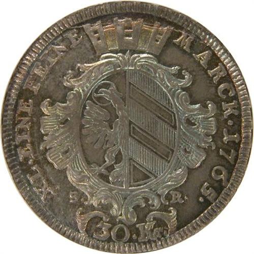 30 Kreuzer 1765SR NGC MS-66. A very strongly struck piece with very attractive light toning and a few adjustment marks on the reverse