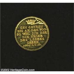 Nurnberg. Gold Baptismal Ducat circa 1700, Goppel 1076, Crown above cross and Jesus. Choice BU, prooflike mint luster. Important notice: We expect to be auctioning lots at the rate of 200-250 per hour. Sometimes eBay Premier live bid software cannot keep up with that pace, so we strongly recommend that you place a realistic proxy bid now as insurance to avoid disappointment. Also please note that all Heritage/CAA lots purchased through eBay Premier carry a 20% Buyer's Premium. Please make sure you read the Terms and Conditions.