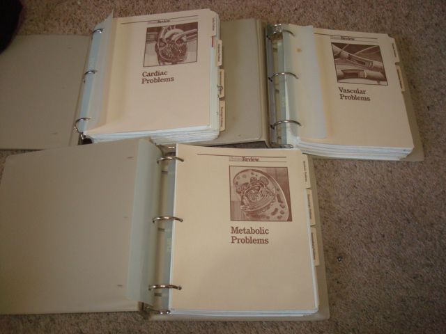 Three 3-ring binders, Vol. 1, Vol. 2, and Vol.3. Looseleaf, with tabbed page dividers. Contents: Volume 1: Cardiac Problems, Respiratory Problems, Gastrointestinal Problems, Neurologic Problems. Volume 2: Vascular Problems, Genitourinary Problems, Endocrine Problems, Musculoskeletal Problems. Volume 3: Metabolic Problems, Hematologic Problems, Immunologic Problems, Psychiatric Problems. System is updated through 1989. Dates of publications range from 1986 to 1989.