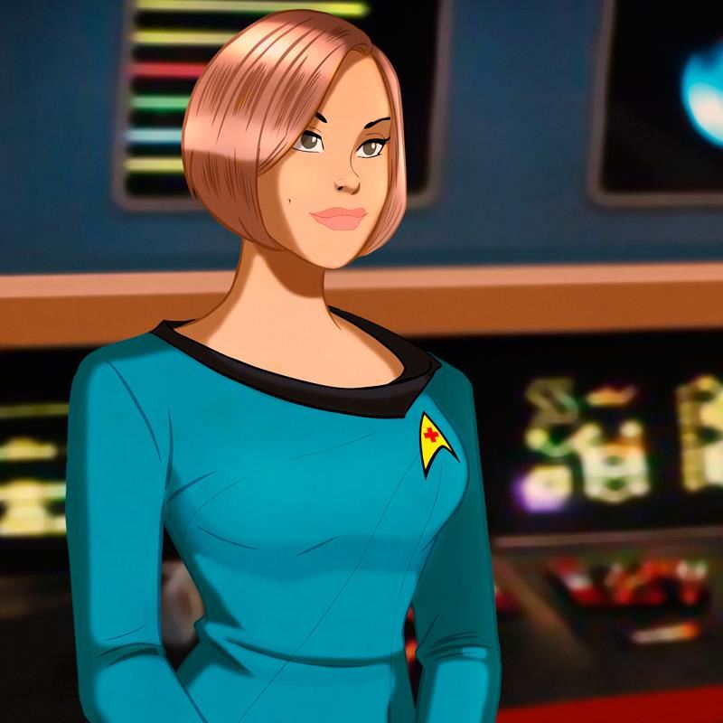 Created for the Star Trek 50th Anniversary Art Exhibition, "Nurse on Deck" by Des Taylos is a chromatic pigment ink limited edition on archival paper. The piece is numbered, hand-signed by the artist, and comes with a Certificate of Authenticty. Measures approx. 22" x 34" (image).