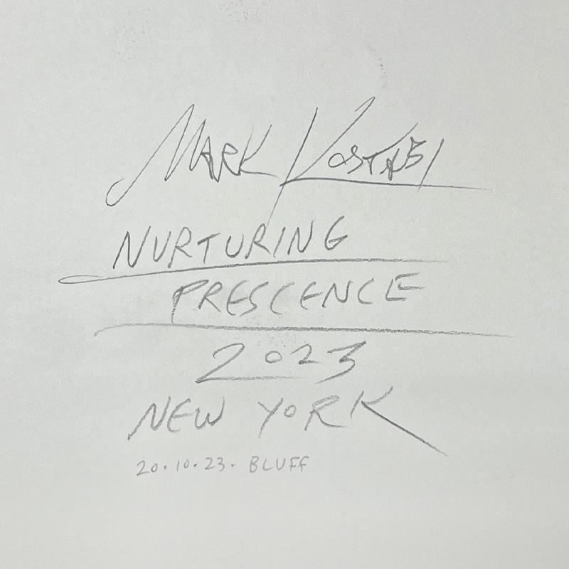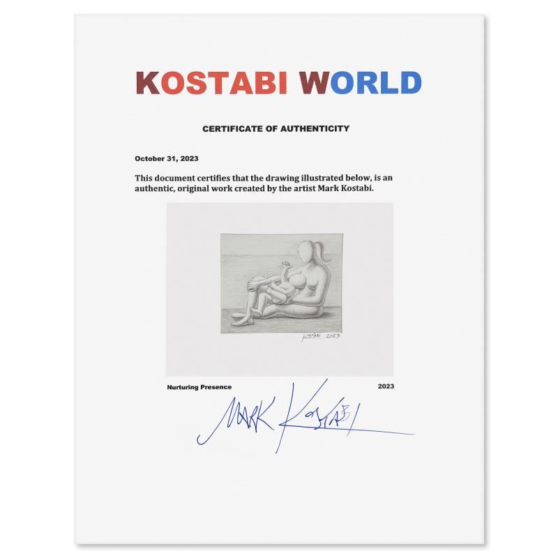 "Nurturing Presense" is an original drawing on paper by Mark Kostabi, hand signed by the artist. This piece comes custom framed and includes a certificate of authenticity. Measures approximately 13" x 13.5" (frame), 7" x 7.5" (image).