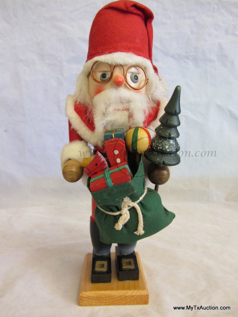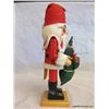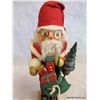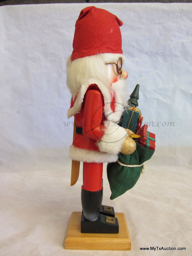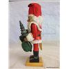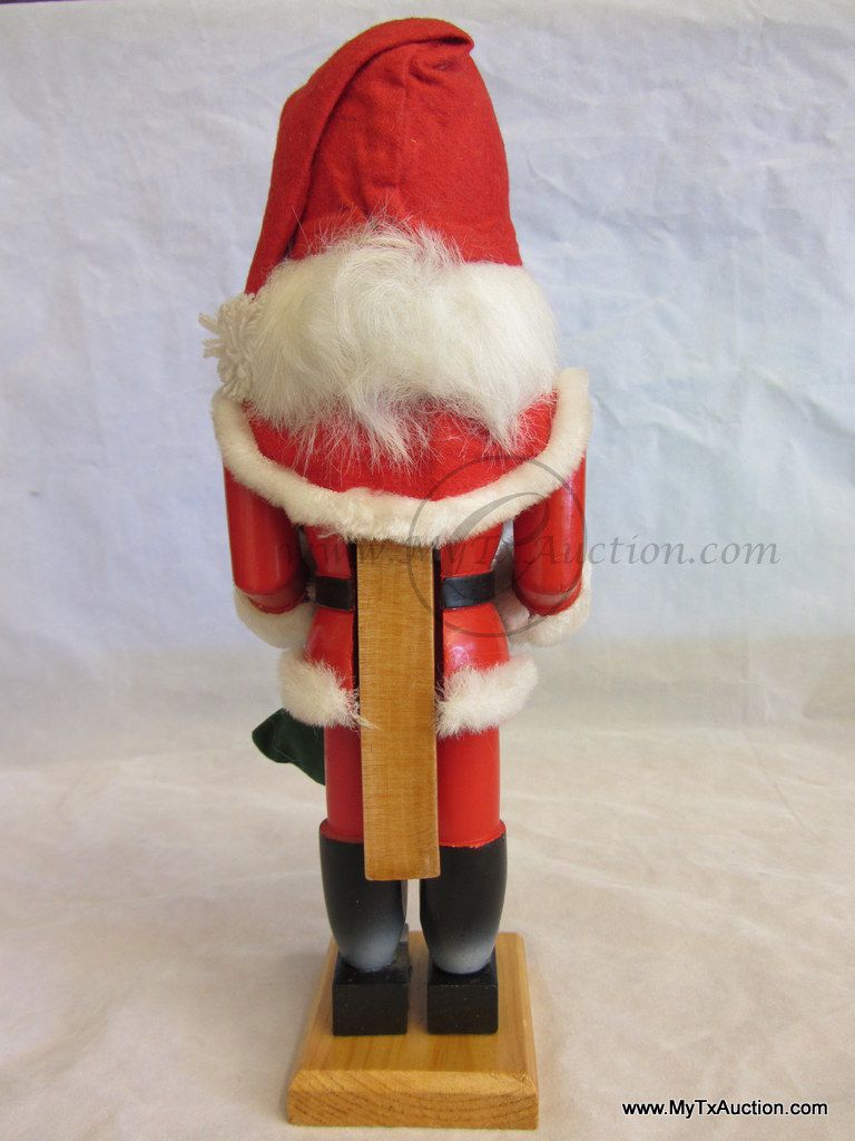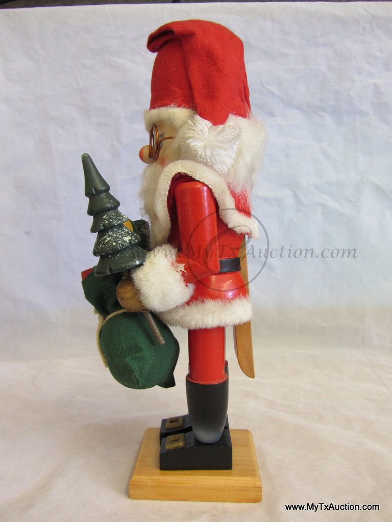 Standing 11" tall all decked out in faux fur and a felt hat, Santa has a bag full