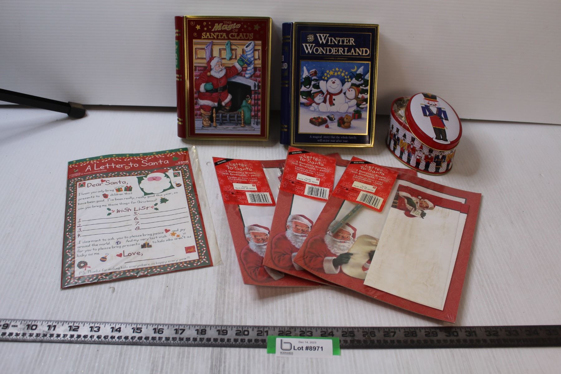 Nutcracker Tin w/ Bells, (4) Write to Santa Letters, (2) Storage Book Tin