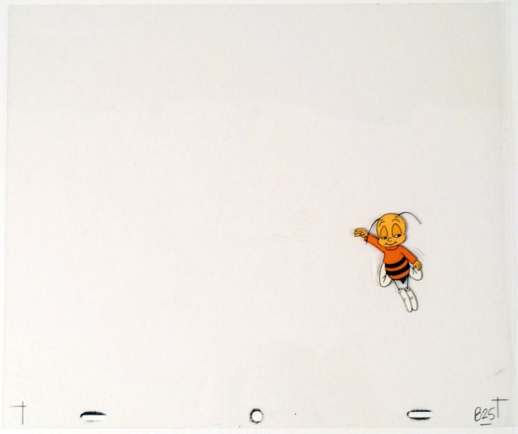 They are nutritious and delicious * * * Original Animation Cel * * Medium: Hand painted acetate celDetails: Animation notations and peg holesSize of cel: 10 1/2 x 12 1/2 inchesCondition: Very good * * * This is an original hand-painted cel set-up used in the production of the "Honey Nut Cheerios Commercial." Each one-of-a-kind set-up represents a slight change in position of the characters. When individually photographed and projected in rapid succession, * the images appear to move. To created production cels, the original animator's drawing is transferred onto an acetate cel (by hand-inking and/or photo copying). The cel is then hand-painted on the reverse side. * * *