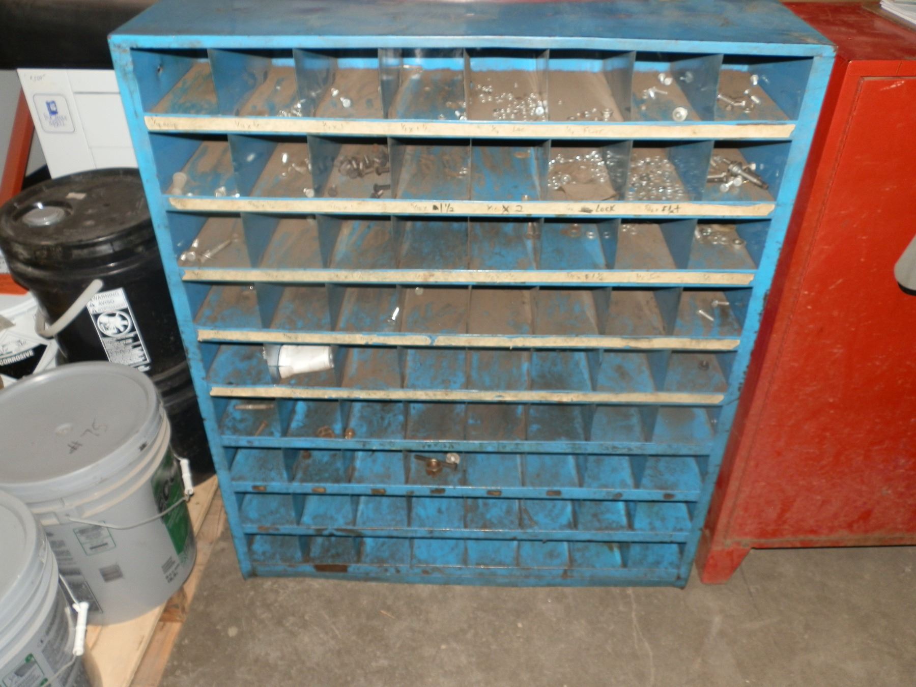 Metal Nuts & Bolt Bin comes with some hardware , 64 pockets, 41" high 35 1/2" wide...used