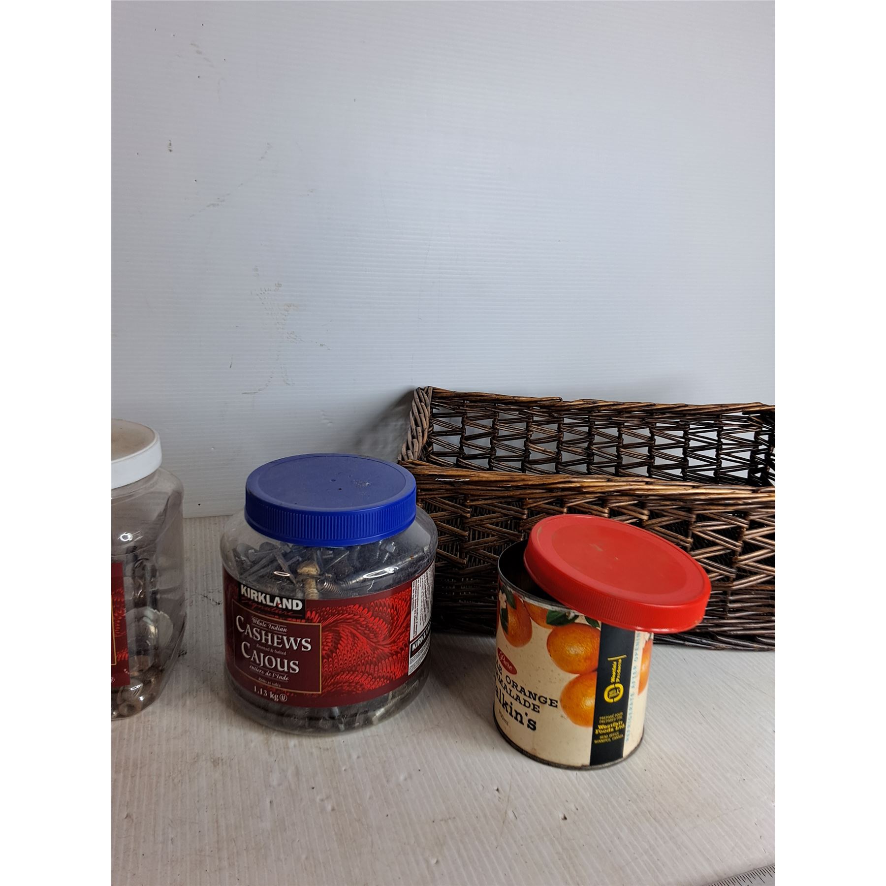 Nuts, Bolts, 2.5" Screws & Brown Wicker Basket