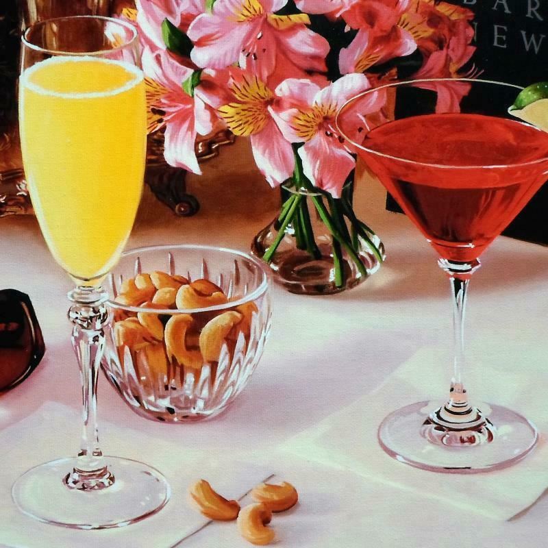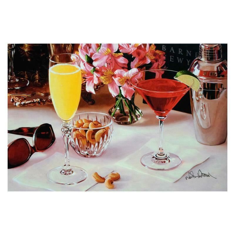 "Ny Happy Hour" is a numbered limited edition giclee on canvas by Nobu Hairara. It comes bearing the artist's authorized signature and with a Certificate of Authenticity. Measures approximately 11"x16.5" (image).
