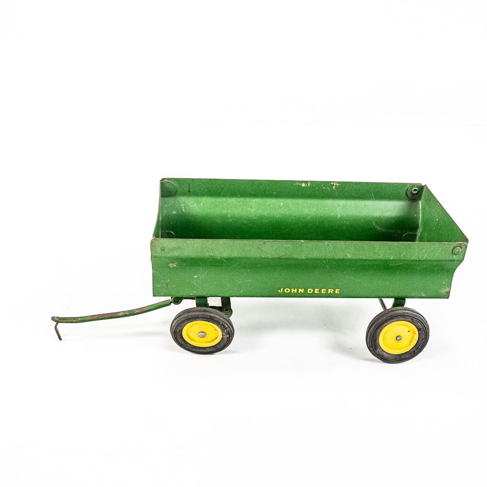 Collection includes vintage 9" John Deere tractor along with a pair of John Deer wagons, Nylint RG LeTourneau tourna hopper earth mover (missing wheels), Nylint trailer & Tonka stables trailer. In good to fair overall condition with some age and wear including discoloration/paint loss, scuffs and scratches, oxidation; some accessory pieces. Perfect addition to your collection, please use photos to judge condition and bid accordingly.
