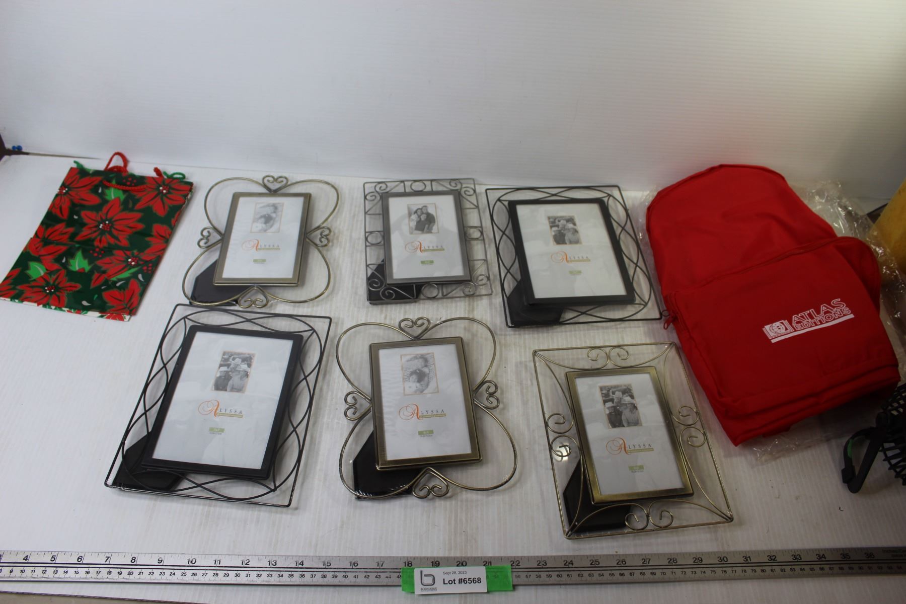 Nylon Atlas Backpack + Christmas Gift bag + (6) Picture Frames (2) 9 1/2 x 7 1/2 + 9 x 6 3/4 + (2) 8 1/2 x 7 + 8 x 6 (NIB)